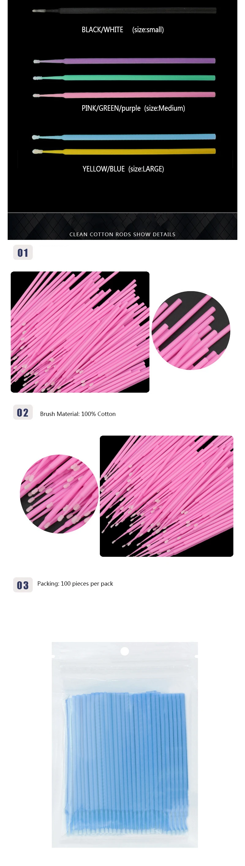 100 шт.компл. одноразовые разноцветные ватные палочки щетка для рес...