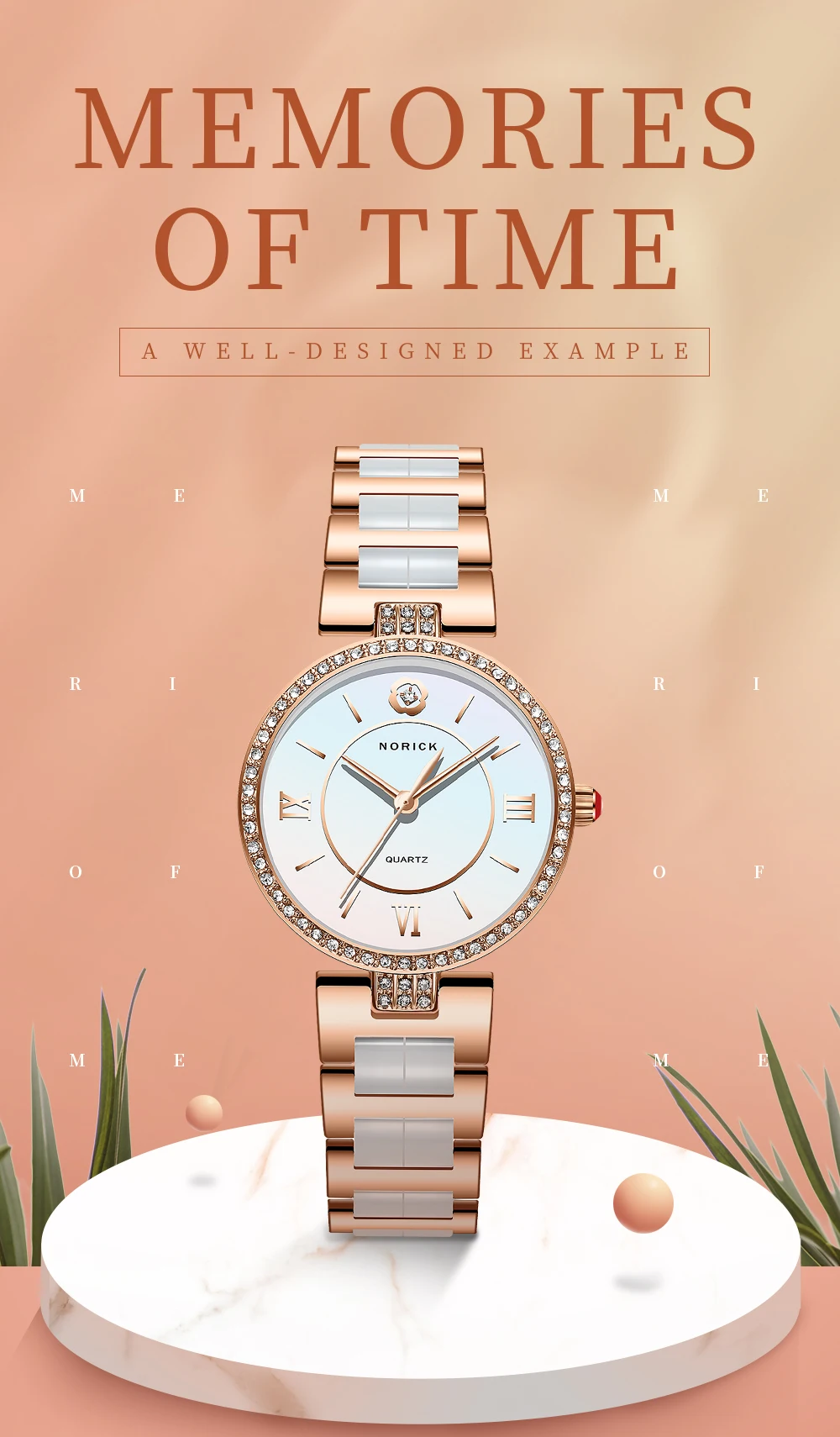 Часы наручные Norick женские с керамическим ремешком, роскошные бре...