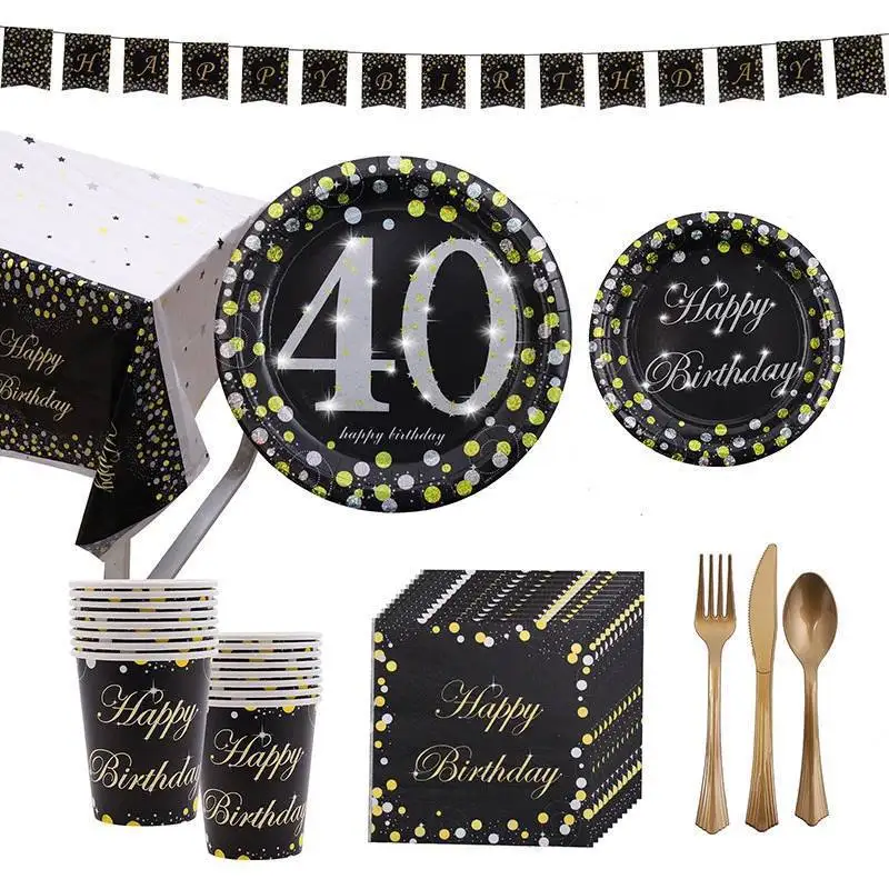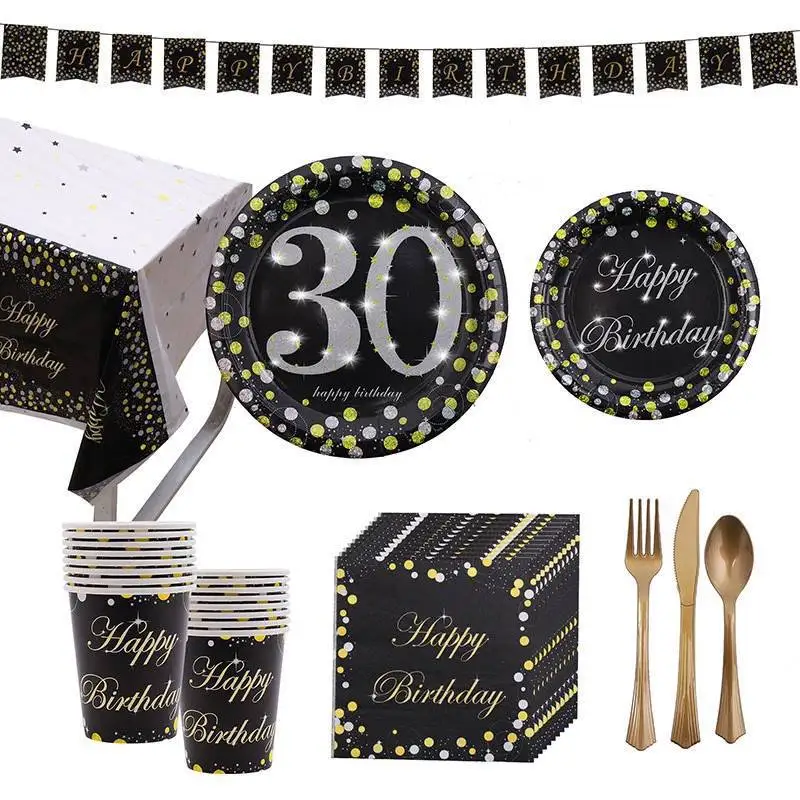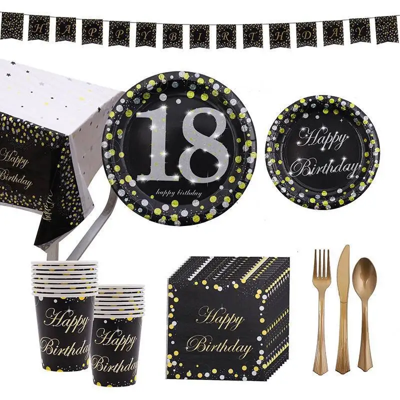 18 21 30 40 50 лет Юбилей День рождения поставки украшения набор одноразовой посуды 16 гостевых Салфетка под тарелку кружку баннер