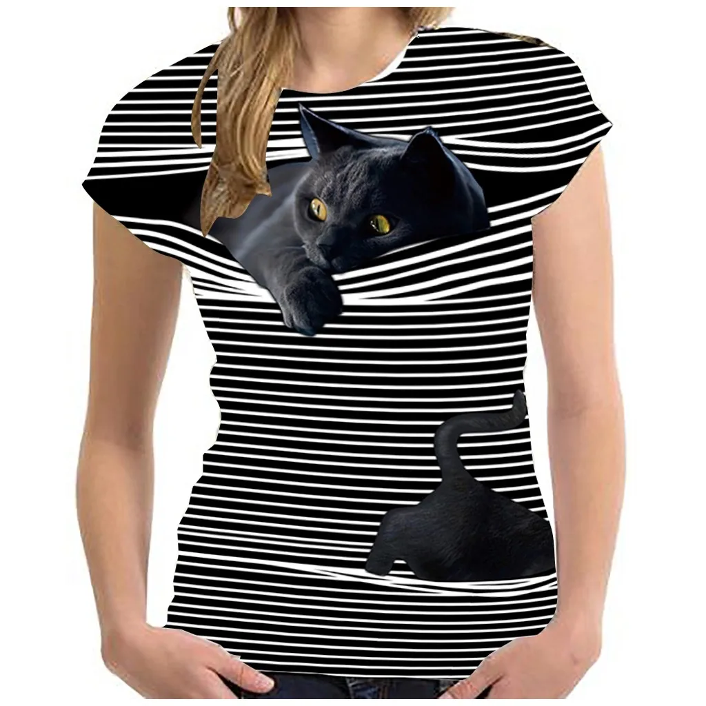 Футболка женская с 3D-принтом кошки, модный топ с круглым вырезом и...