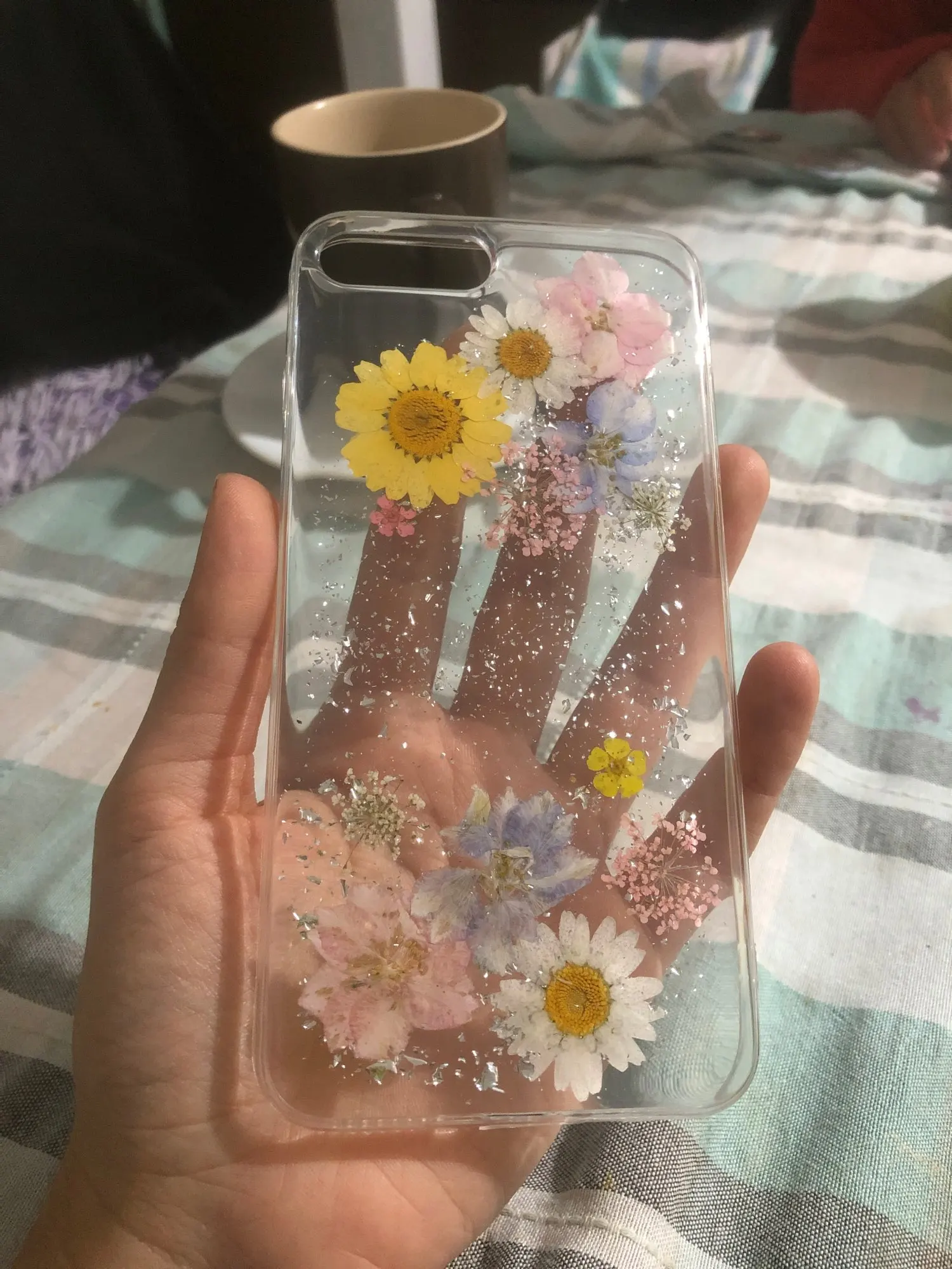 Милые чехлы, пришли быстро, но очень расстроило что от бортика много свободного места незаполненно хотя бы блёстками, выглядит странно на чёрном телефоне, но доставка быстрая, розовый ещё более-менее, но та же проблема