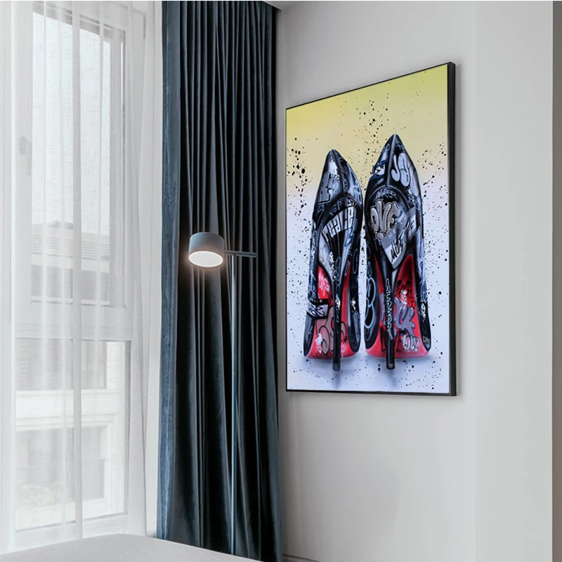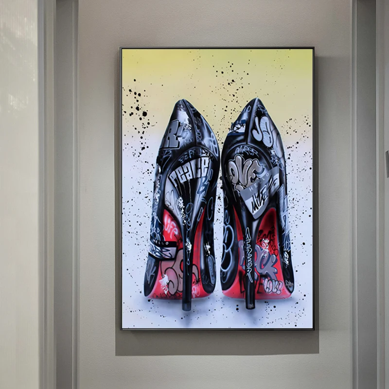 Граффити; Женская черная обувь на высоком каблуке холст картина на стену граффити плакаты печать, Картина Настенная для декора гостиной