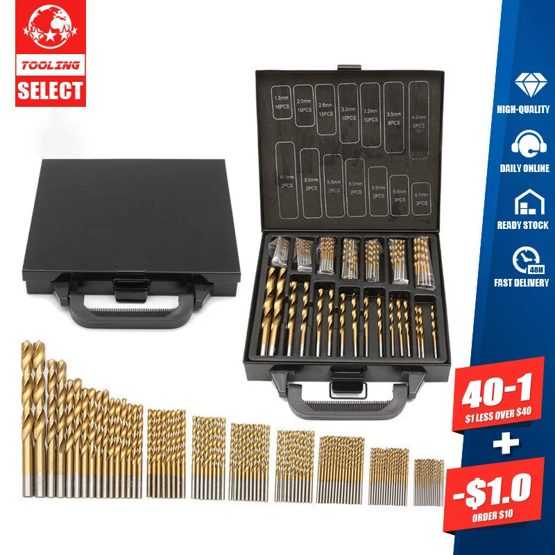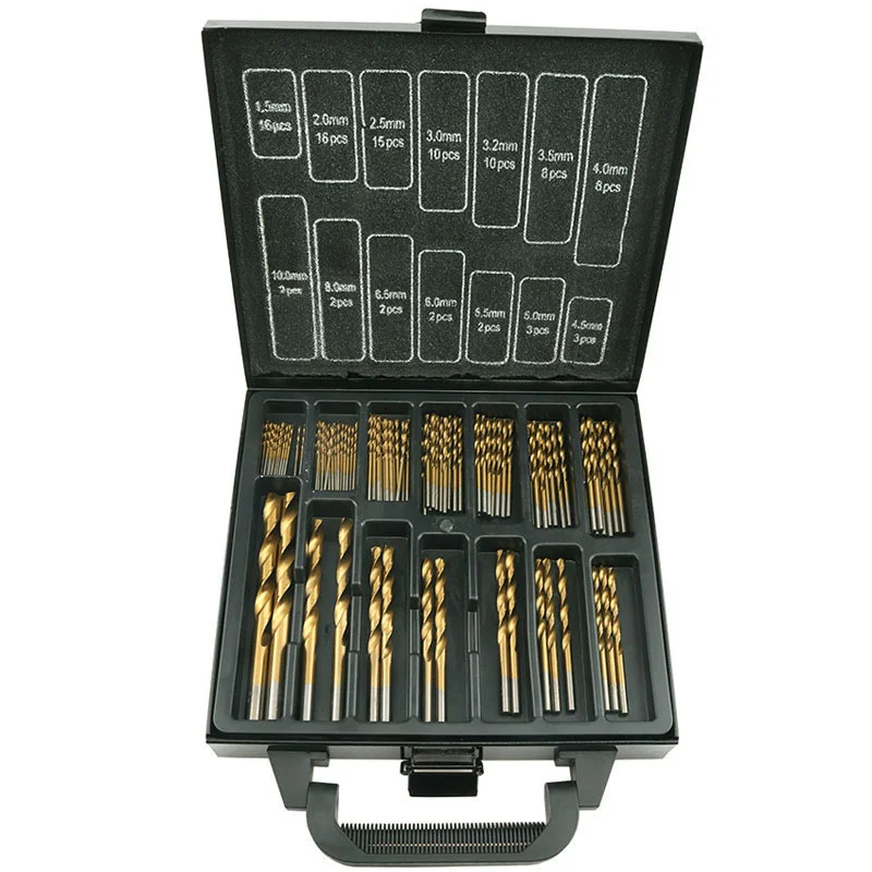 Набор спиральных Сверл из быстрорежущей стали, 99 шт., 1,5-10 мм, с титановым покрытием, в пластиковой коробке