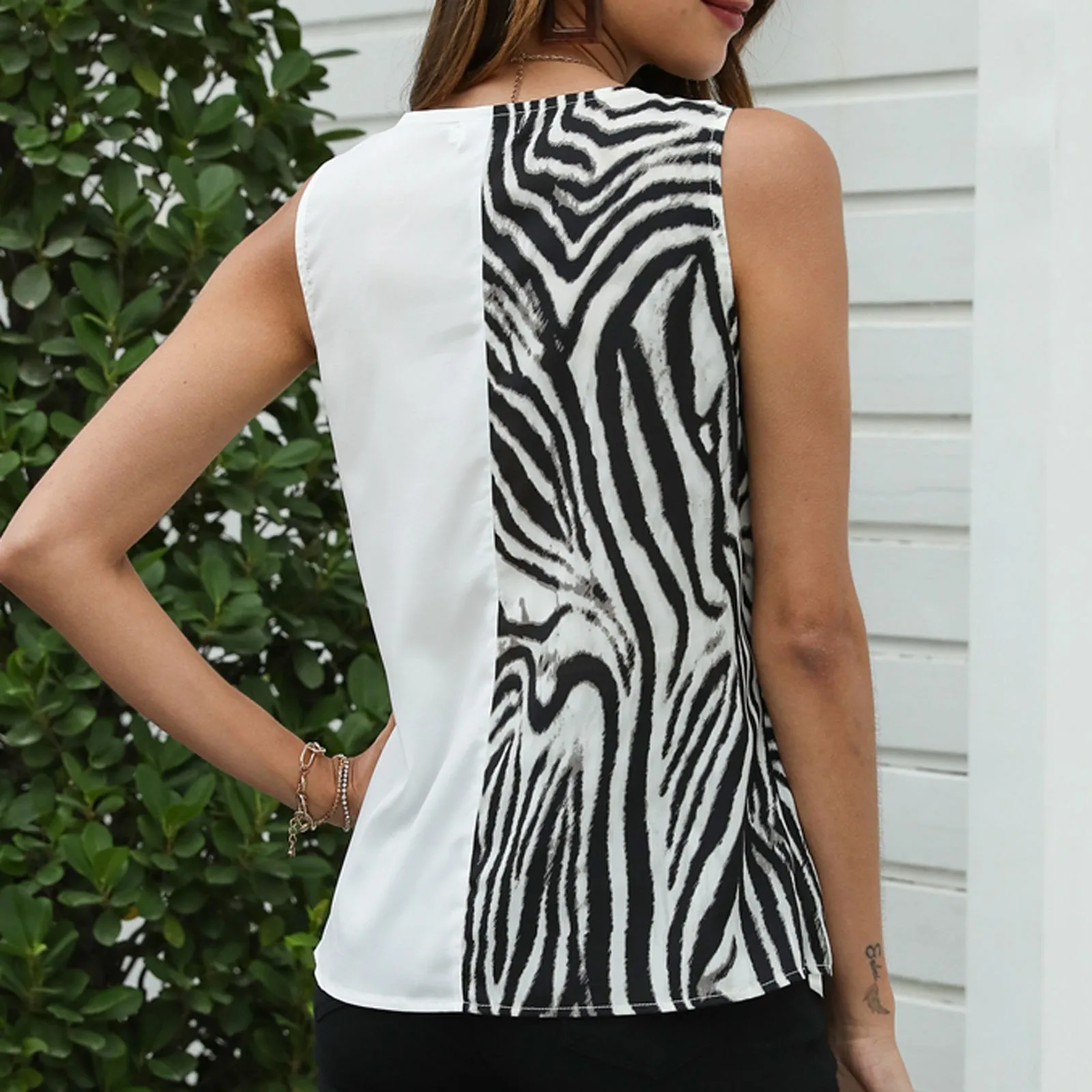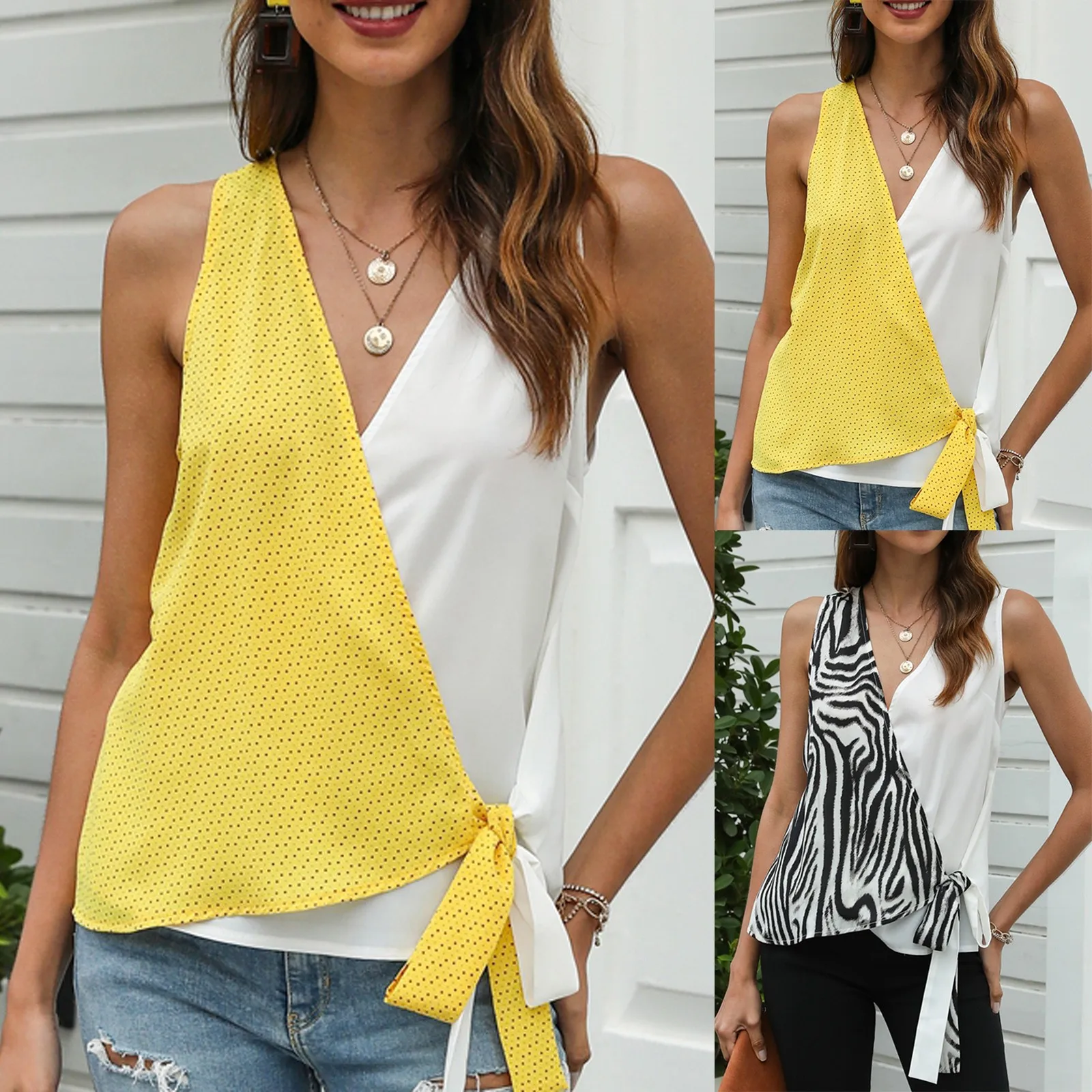 Женcкие топы и Bloues с v-образным вырезом в стиле пэчворк с бантом и леопардовым принтом; Платье-майка футболка без рукавов, майка-топ, Повседневная Свободная летняя блуза