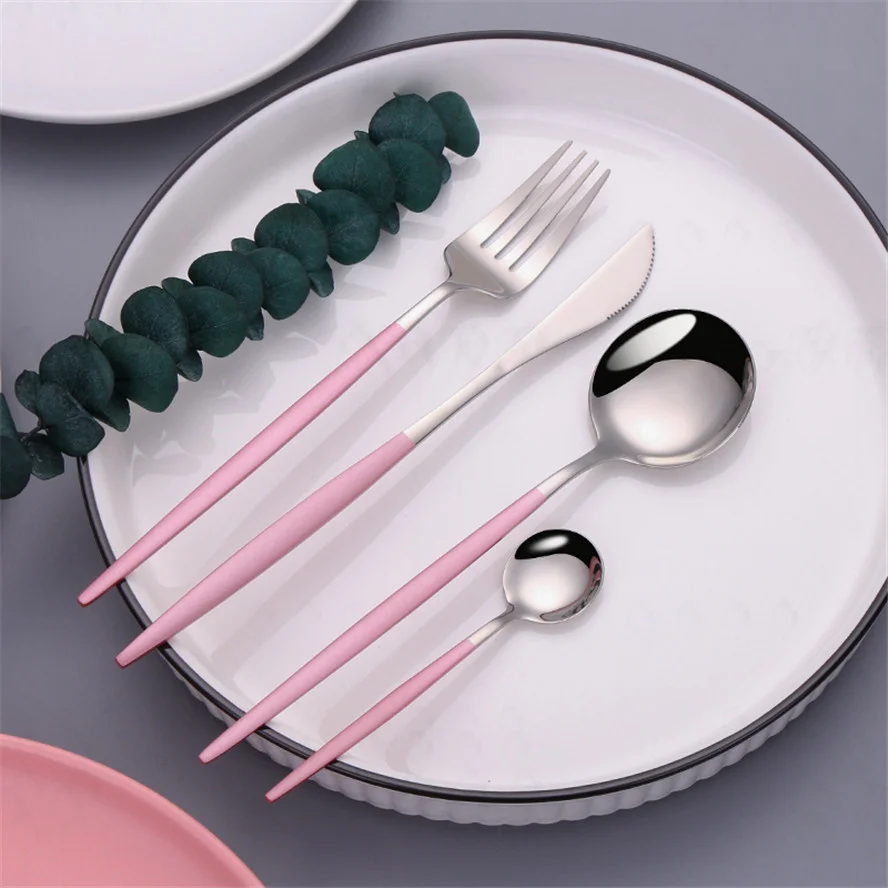 Розовый Серебряный набор из нержавеющей стали столовые приборы кухонные принадлежности экологически чистый Западный десертный нож вилка ложка столовые приборы