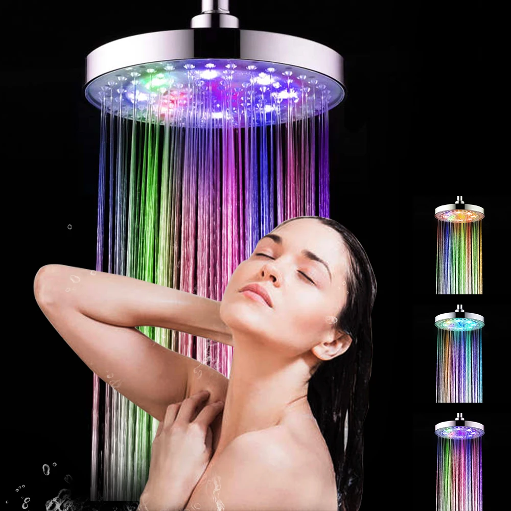 Светодиодсветодиодный дождевая насадка для душа, насадка для душа высокого давления с RGB-датчиком изменения цвета, насадка для душа для ванной комнаты