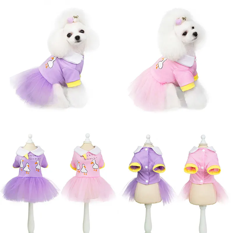 Платье для маленьких собак с принтом гуся, летнее хлопковое модное милое мультяшное Сетчатое платье для щенка и собаки, мягкое удобное платье для собак и принцесс