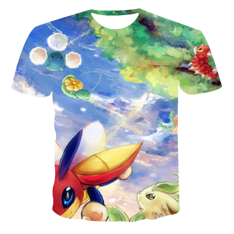 Новый летний 3D футболка 2021 Аниме Покемон мужская одежда популярное стильное джинсовое платье с коротким рукавом в стиле кэжуал с О-образным вырезом уличная одежда прикольная настраиваемая 130-6 XL