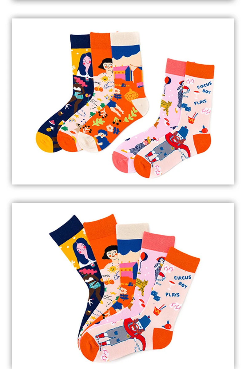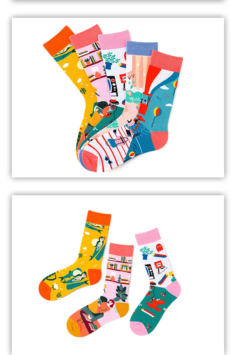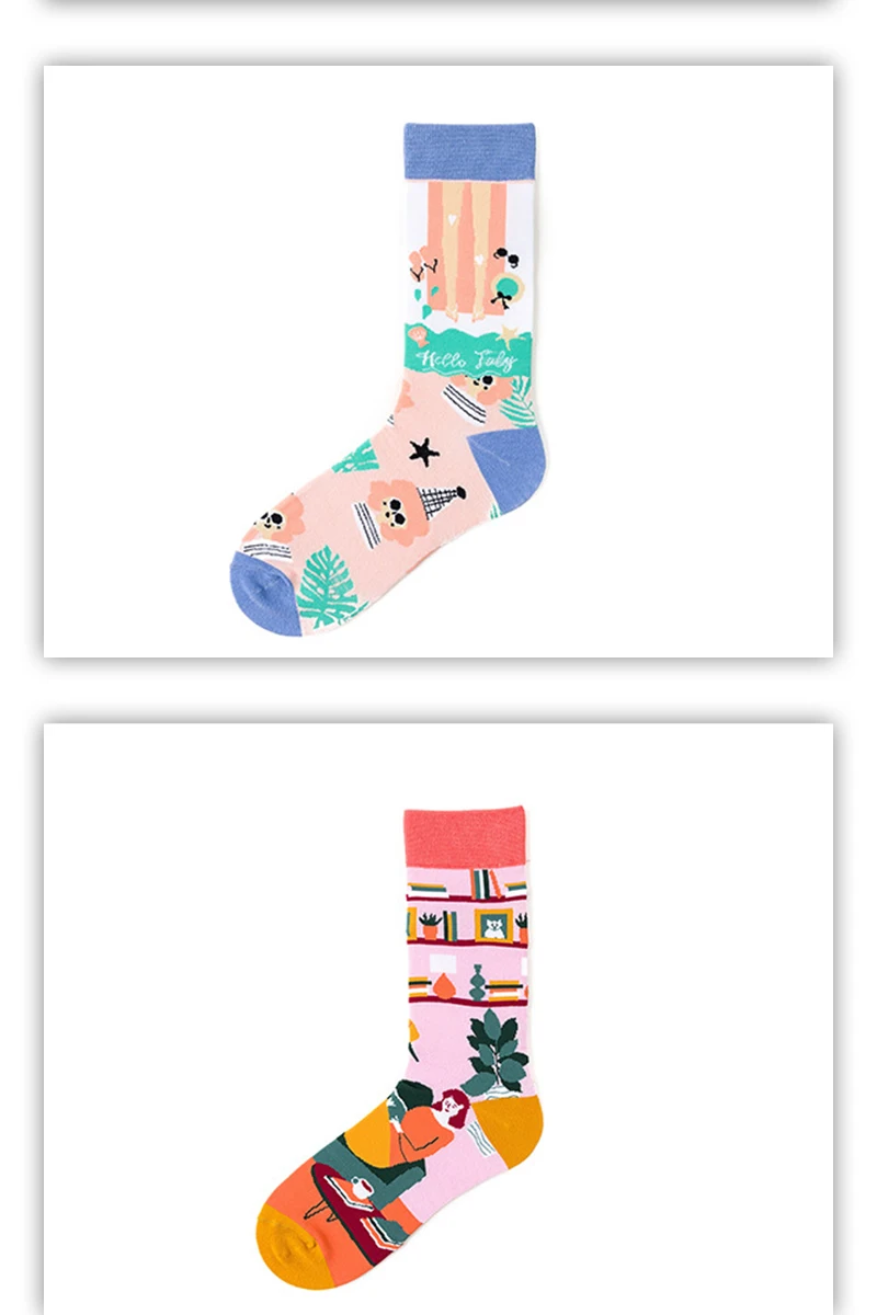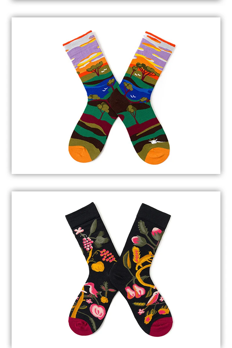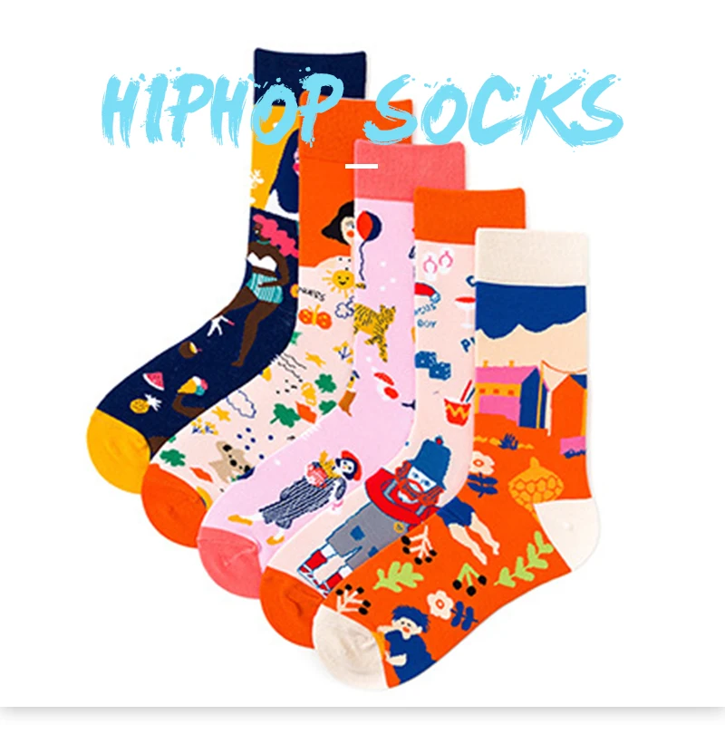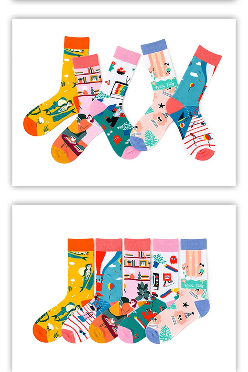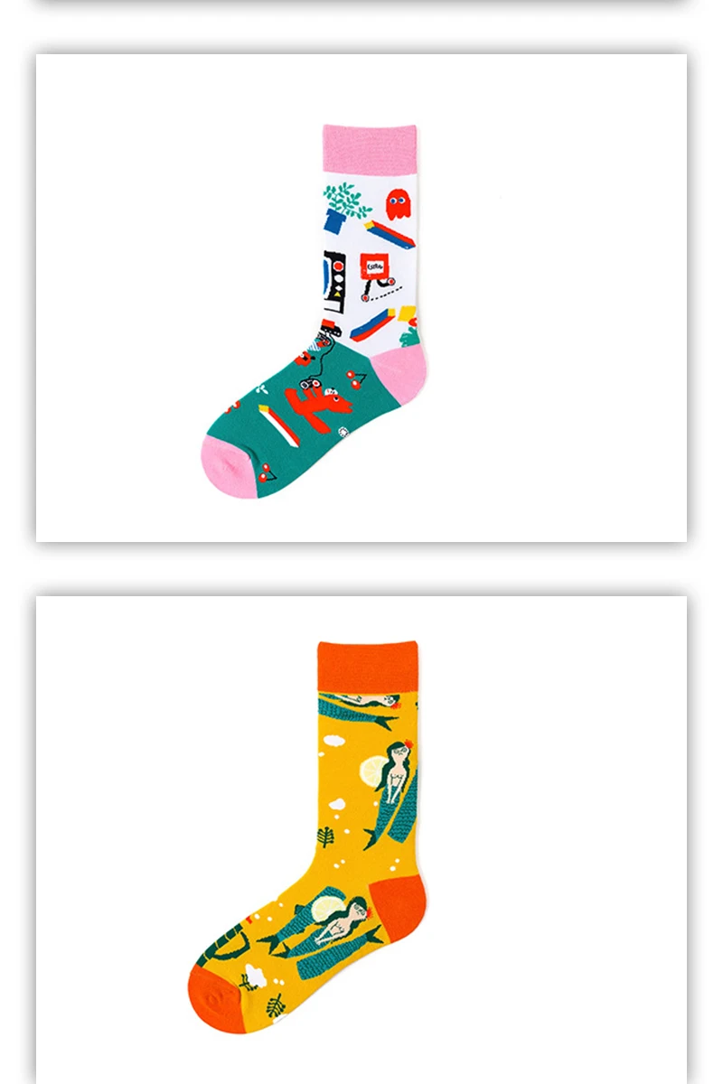 Женские носки с изображением фруктов, животных, иллюстраций, абстрактных рисунков, в стиле хип-хоп, крутые модные хлопковые носки для коньков