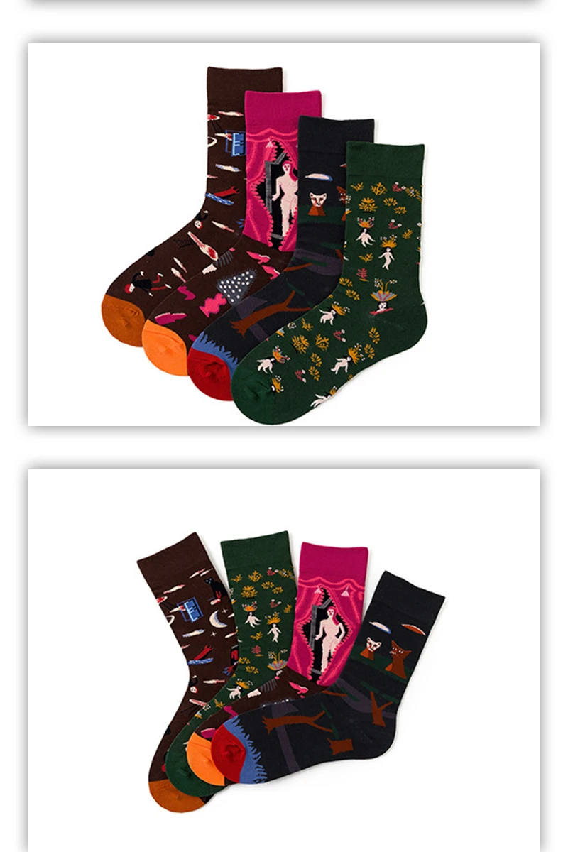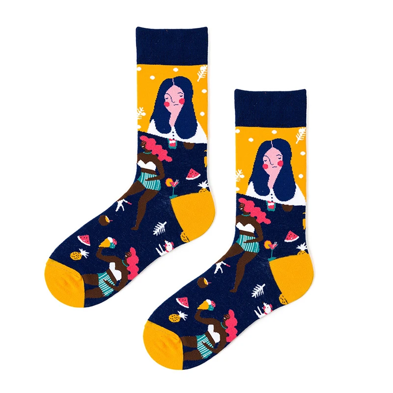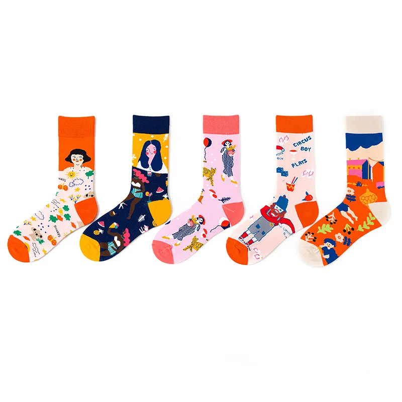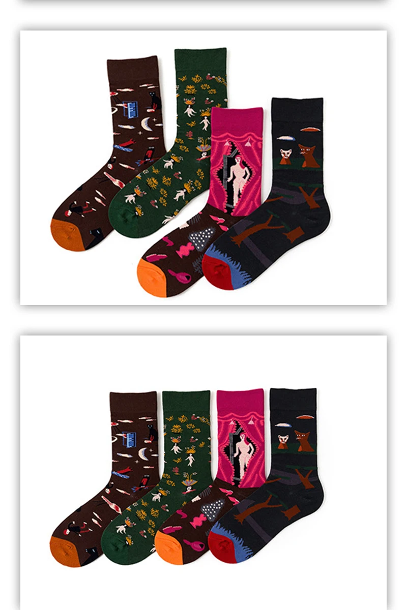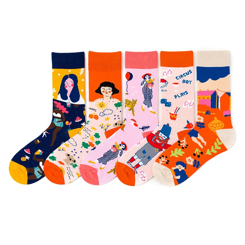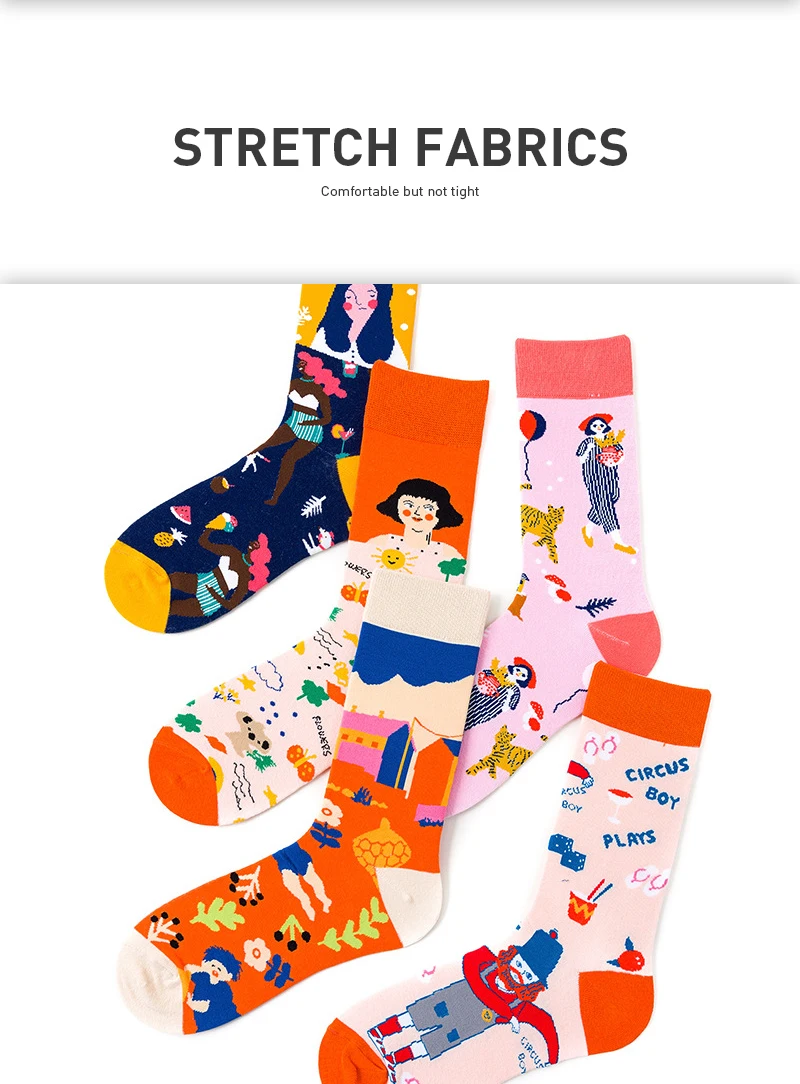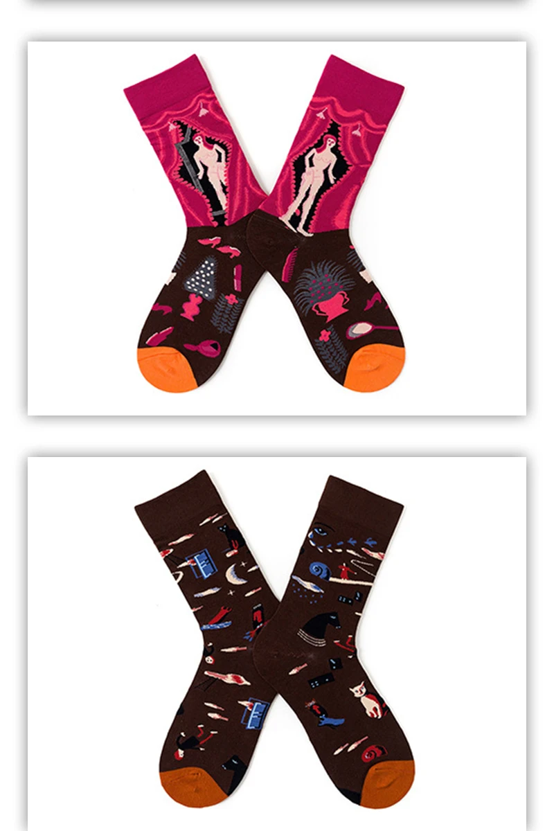 Женские носки с изображением фруктов, животных, иллюстраций, абстрактных рисунков, в стиле хип-хоп, крутые модные хлопковые носки для коньков