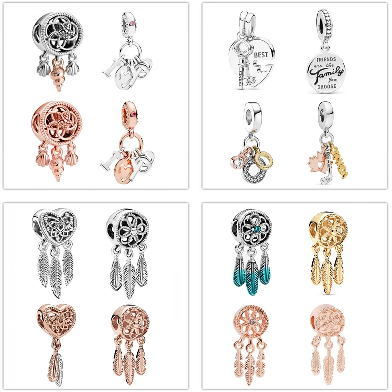 2021 Новый серебряный цвет Ловец снов перо Кленовый лист кулон подходит для браслетов Пандоры DIY женские оригинальные Бусины Ювелирные изделия Подарки