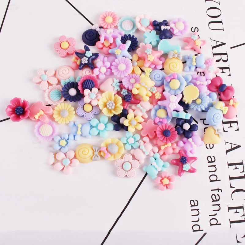 Аксессуары для волос для девочек, полимерные цветы, банты, животные, кабошон с плоской задней поверхностью, для самостоятельного изготовления ювелирных изделий, 50 шт.