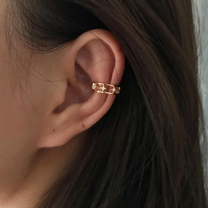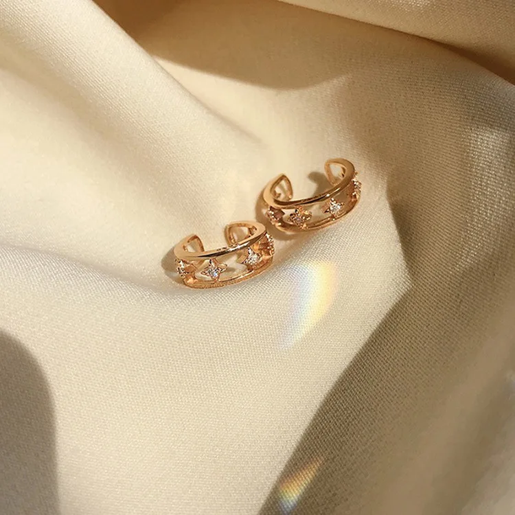 Женские клипсы для пирсинга, маленькие, круглые, золотые, со звездо...