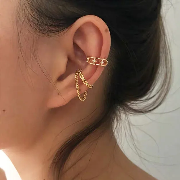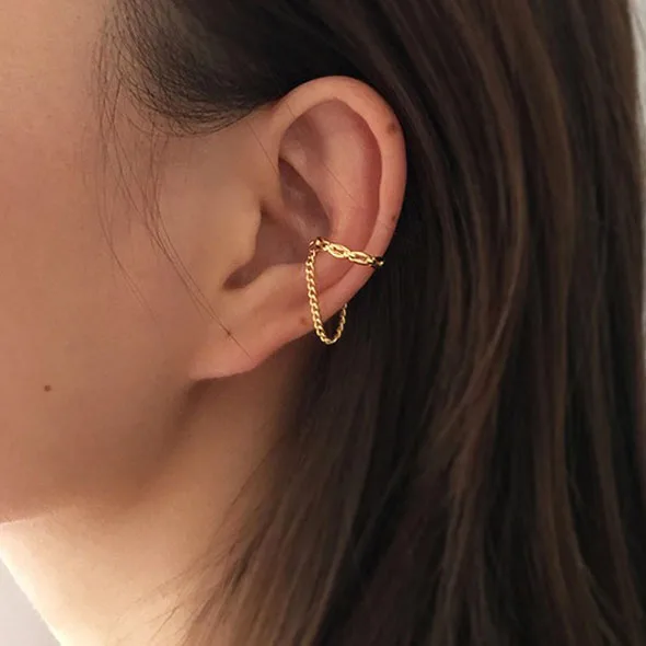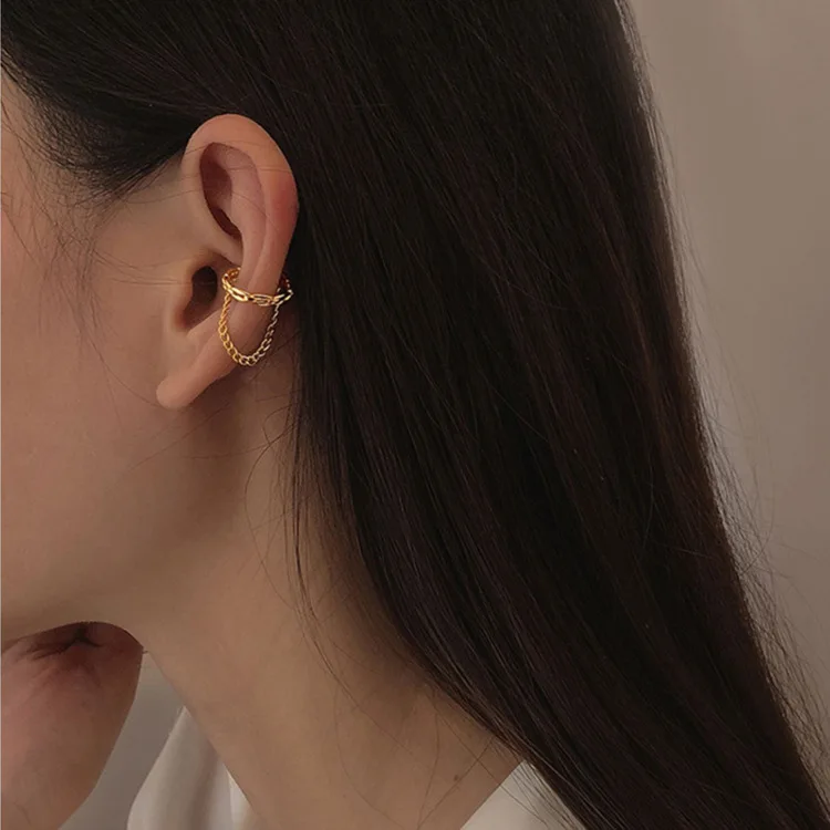 1 шт. металлические манжеты для ушей Huggie, серьги-манжеты с цепоч...
