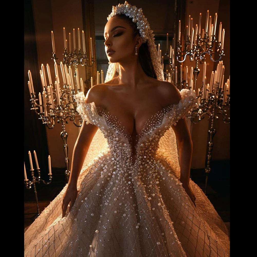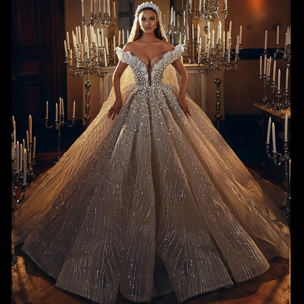 Великолепные Свадебные платья из жемчуга 2021 цвета шампанского с блестками, блестящие свадебные платья на Ближнем Востоке, свадебные платья Vestidos De Novia