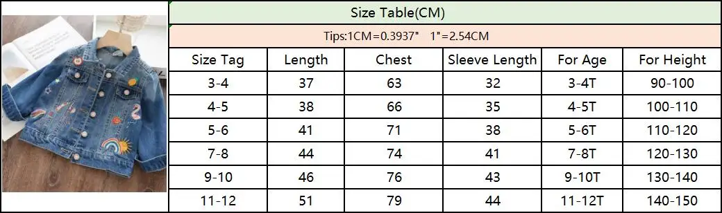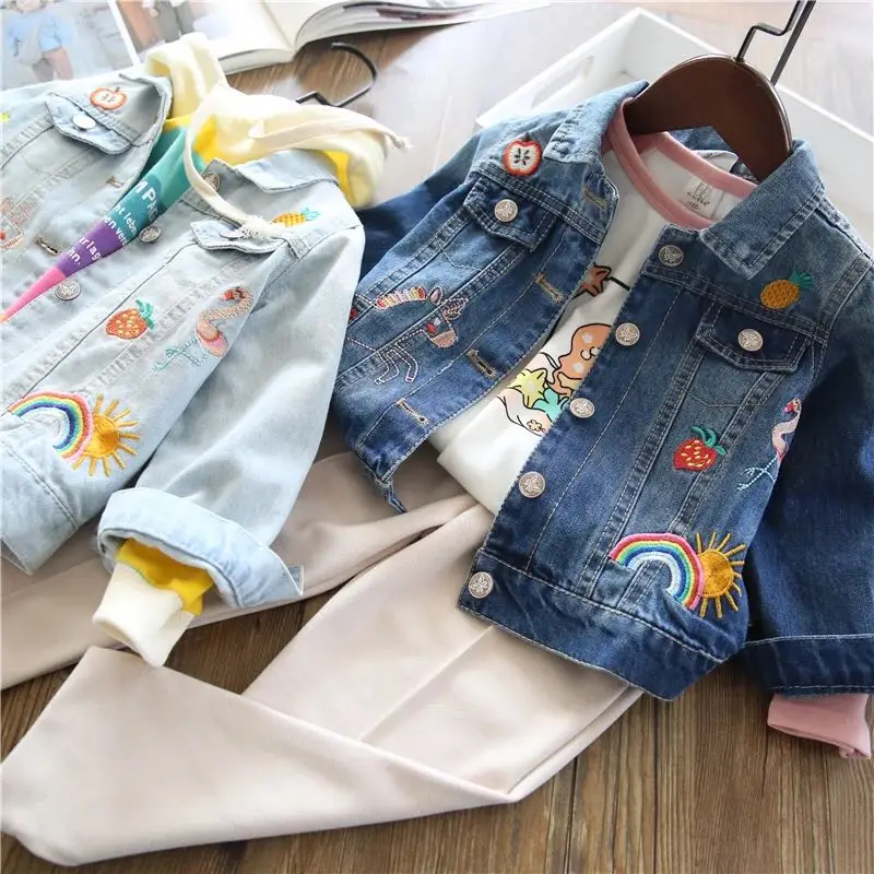 Осенне-весенняя рубашка с принтом и джинсовая куртка с мультипликационным принтом, для девочки; Дети Единорог с вышивкой для маленьких девочек, джинсовая куртка из денима От 3 до 12 лет