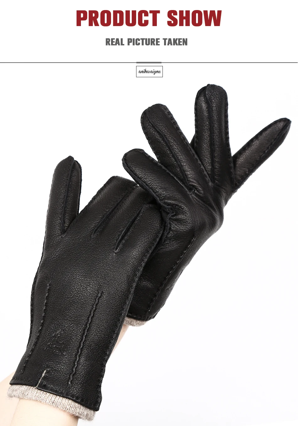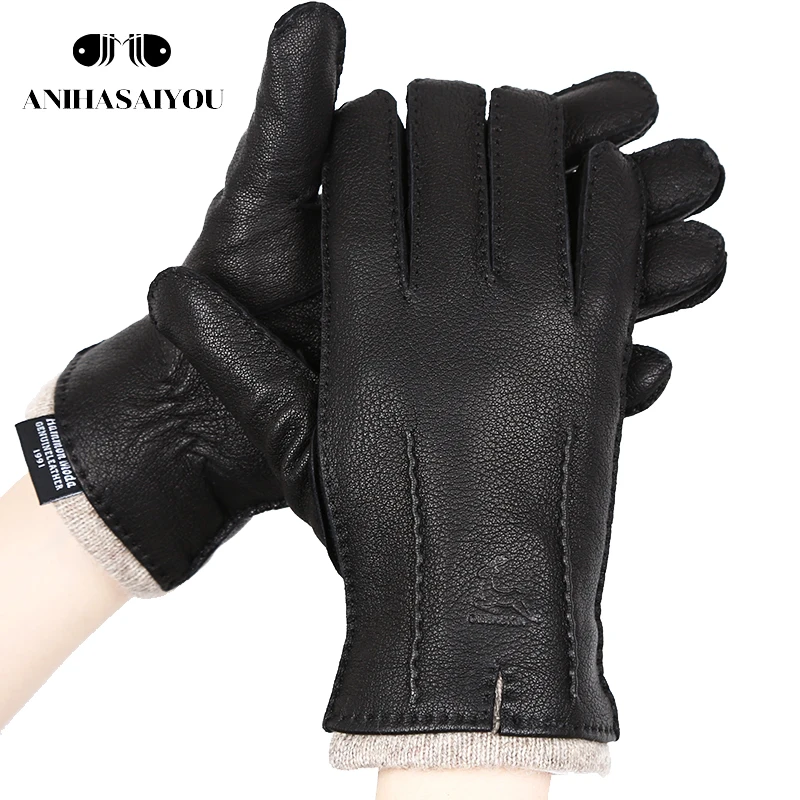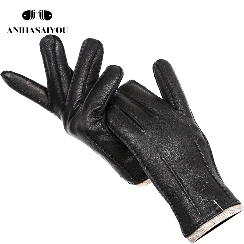2021 зимние мужские перчатки, кожаные перчатки с оленем мужские, мя...