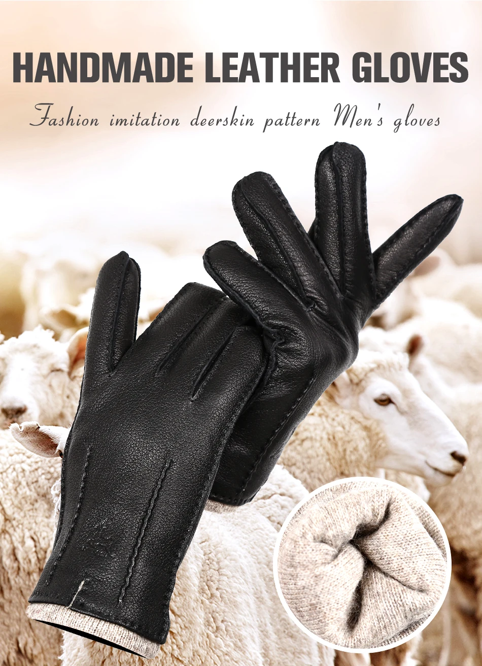 Зимние мужские кожаные перчатки ручной работы, теплые мягкие кожаные перчатки мужские, гофрированные кожаные перчатки 70% шерсть lining-8069J