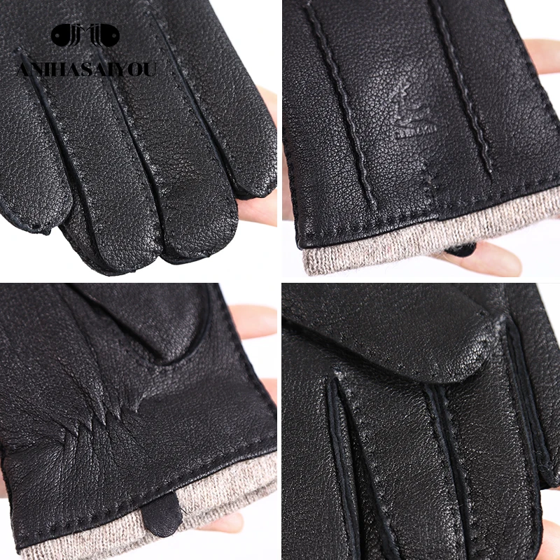 Новые зимние мужские кожаные перчатки ручной работы кожаные перчатк...
