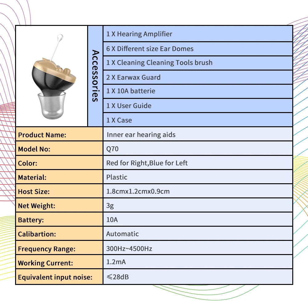 [Невидимый и удобный в носке]: этот звуковой аппарат очень сдержанный, незаметный и удобный для ношения в обоих ушах. Поставляется с различными ушными вкладышами для лучшей посадки. Примечание: цифровой звуковой усилитель для слабой и умеренной потери сердца. Идеальная альтернатива слуховым аппаратам на заказ.[Переключатель функций 3-в-1]: Эта кнопка для управления 3 программами, 8 регулировками громкости и режимом ожидания поможет вам услышать то, что вы упускаете. Примечание: Если у Вас возникли трудности с манипуляцией небольшими устройствами, это ушное устройство очень маленькое и может быть сложно работать.[Передовые технологии]: слуховой усилитель с 6-канальным цифровым процессором, с шумоподавлением и отменой отзывы. Этот усилитель голоса поставляется с 3 режимами: 1-нормальная Настройка, 2-шумная Настройка, 3-Настройка высоких частот. Поможет вам услышать звуки природы.