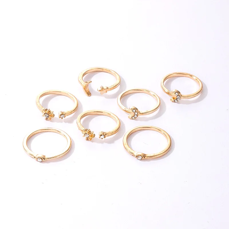 Docona 7 шт.компл. в богемном стиле со звездами полумесяц Совместные Кольца для Для женщин геометрический открытие с кристальными камнями комплект колец на фалангу ювелирные изделия Anillos