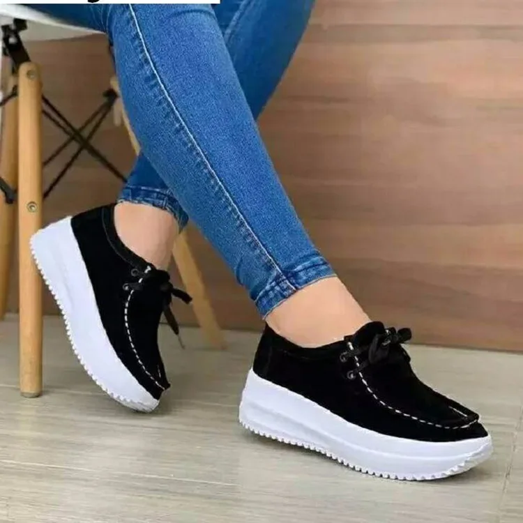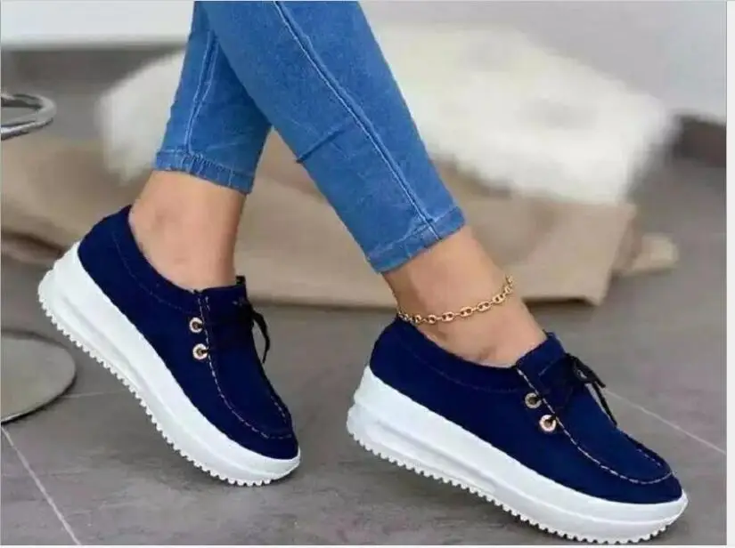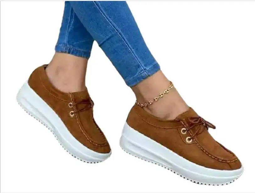 Лоферы женские на платформе, эластичная ткань, плоская подошва, на шнуровке, удобная повседневная обувь, для работы, весна-осень