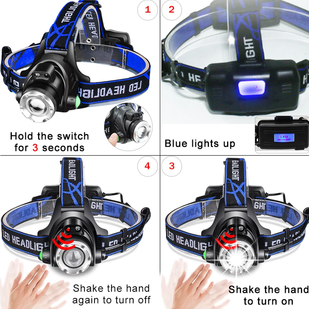 USB Сенсор фары светодиодный налобный фонарь T6 Масштабируемые фара фонарь головная лампа на 18650 Батарея для рыбалки охоты