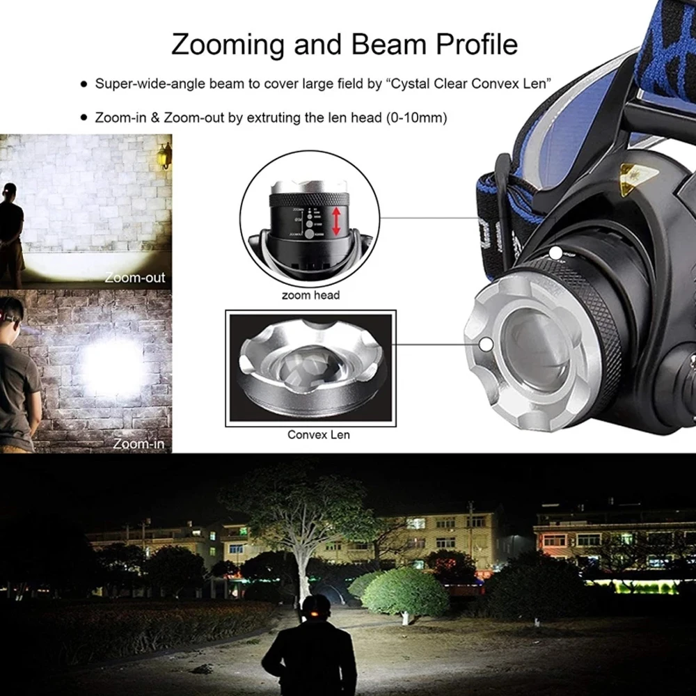 1. Лампы: CREE XML-T6 лампы, высокая яркость 1000 люменов, срок службы 100000 часов; 2. Выпуклая линза Eagle Eye: акриловая выпуклая линза Eagle Eye, которая делает светильник более сфокусированным и дальним, а алюминиевая ударная головка защищает линзу от истирания; 3. Отверстие для зарядки USB: отверстие для зарядки головки, подключение к источнику питания для быстрой зарядки и продления срока службы батареи; 4. Высококачественный головной светильник: гибкий светильник, дизайн ремня, вы можете отрегулировать подходящий размер в соответствии с вашим собственным размером головы; 5. Телескопическая Фокусировка: телескопическая фокусировка головы, свободная Регулировка преобразования астигматизма-конденсации, простота в обращении с различными средами; 6. Регулировка угла: головка может регулироваться вверх и вниз в соответствии с ее собственными потребностями, которая проста в эксплуатации, проста в использовании и удобна для рабочего освещения; 7. Доступны три вида водонепроницаемых переключателей: резиновый нескользящий водонепроницаемый переключатель, мягкий материал, удобный на ощупь, три шестерни: сильный-слабый-мигающий.