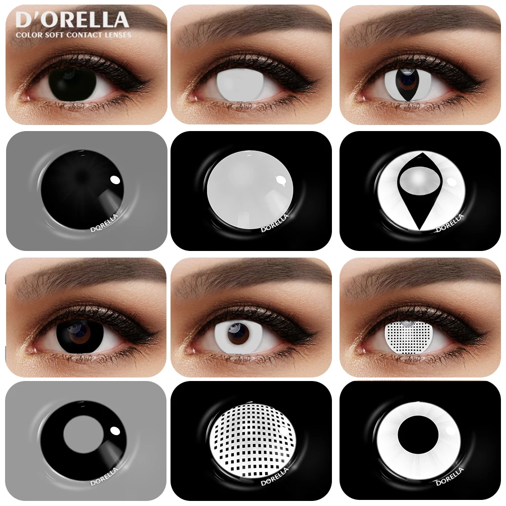 Цветные контактные линзы orella для косплея, аниме линзы для глаз, 1 пара, белые черные линзы, контактные линзы, косметические цветные линзы для глаз