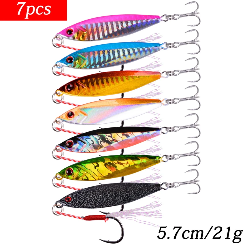 Длинная металлическая джиг, приманка для рыбалки, вес 14 г, 21 г, 30 г, медленно забрасываемая морская рыболовная приманка, голографическая искусственная рыба, 7 шт.