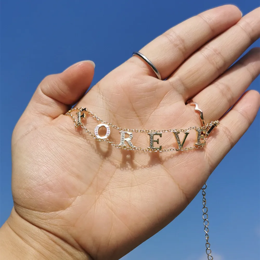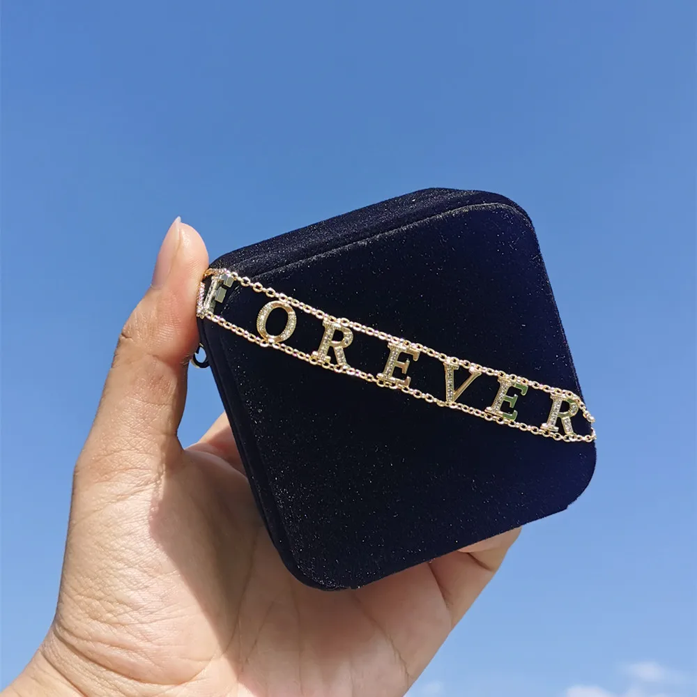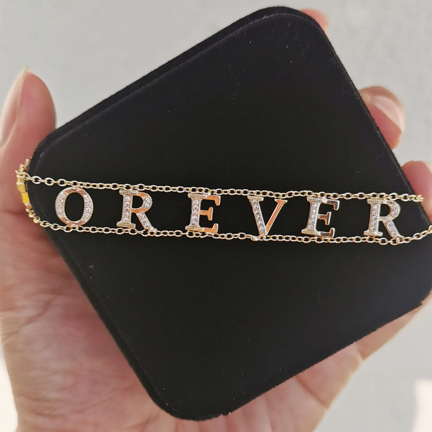 2021 новый браслет с буквами циркония, женский браслет с буквами на заказ, золотой персонализированный браслет с именем, Двойная Цепочка, ювелирные изделия, подарок