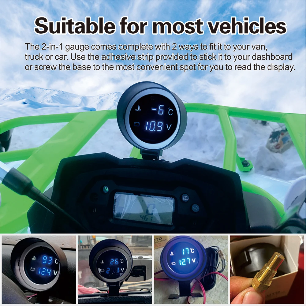 2 в 1 измеритель температуры воды цифровой светодиодный 18NPT вольтметр с датчиком температуры воды для соединения труб Автомобиль Грузовик Мотоцикл Универсальный