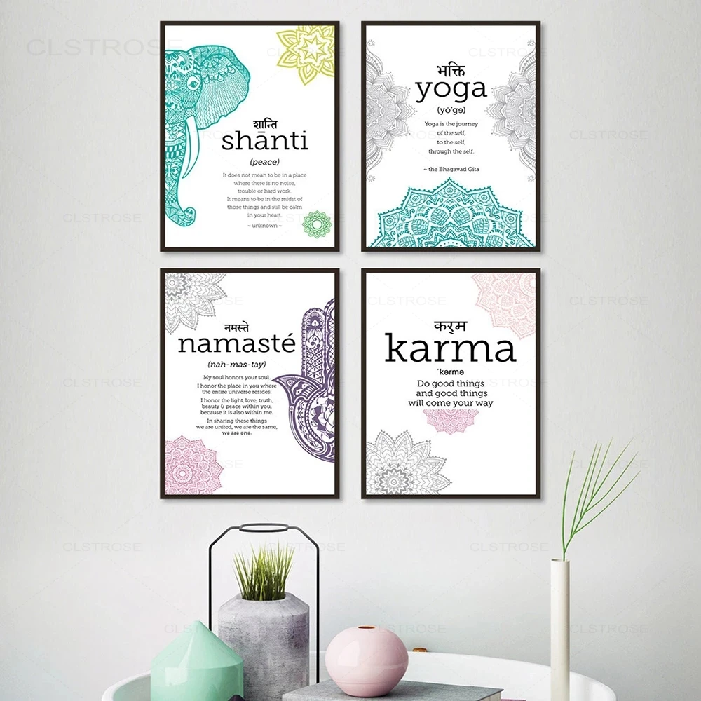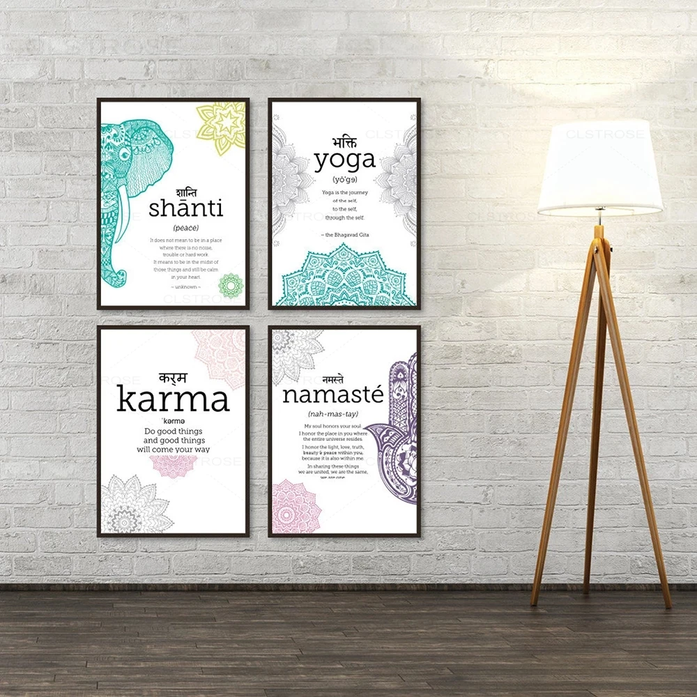 Плакаты и принты Йога Карма цитаты названия вдохновляющие модульные настенные картины для ванной современная домашняя Картина на холсте