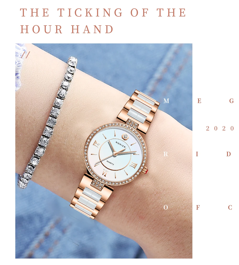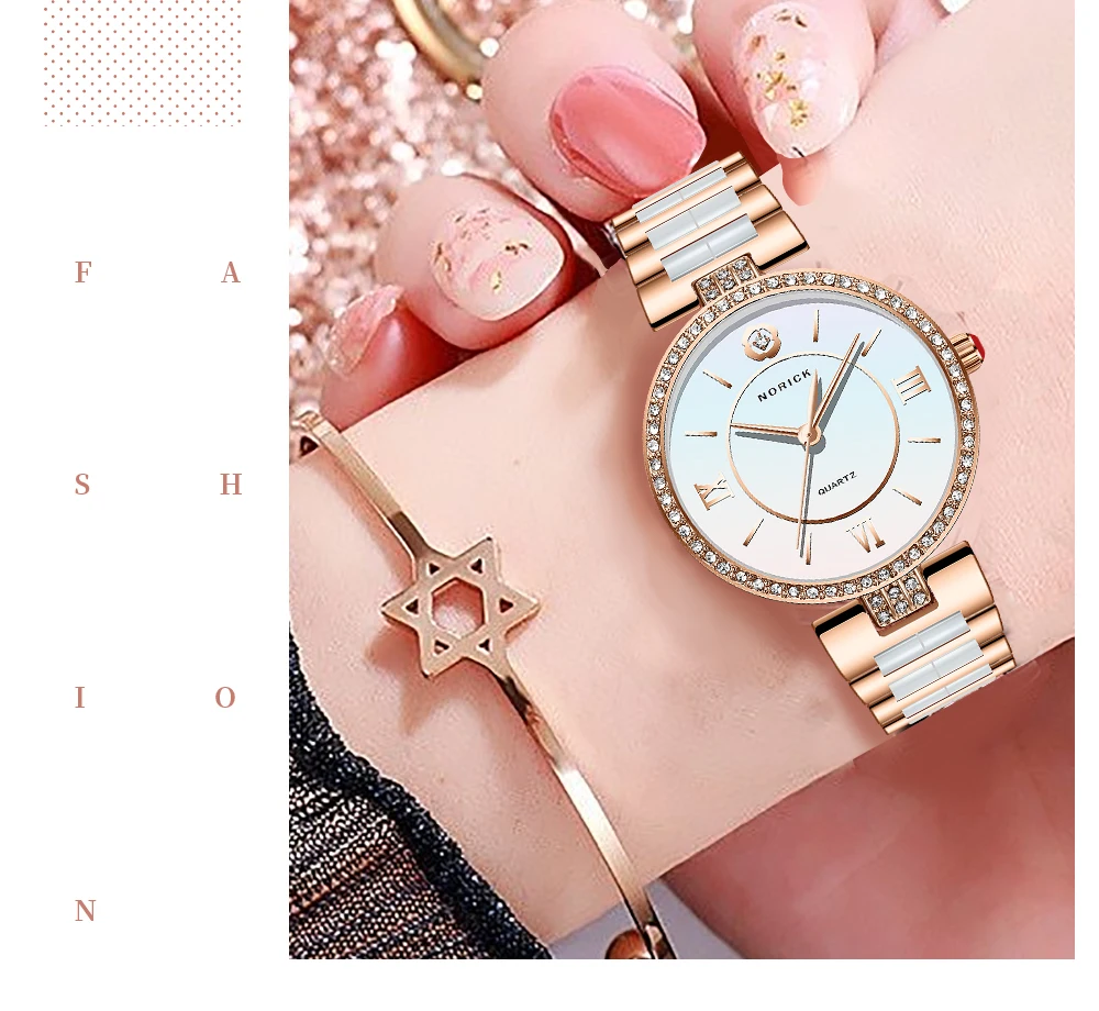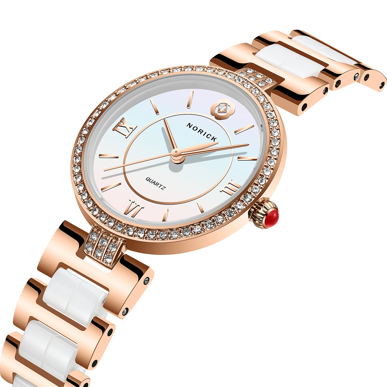 Часы наручные Norick женские с керамическим ремешком, роскошные бре...