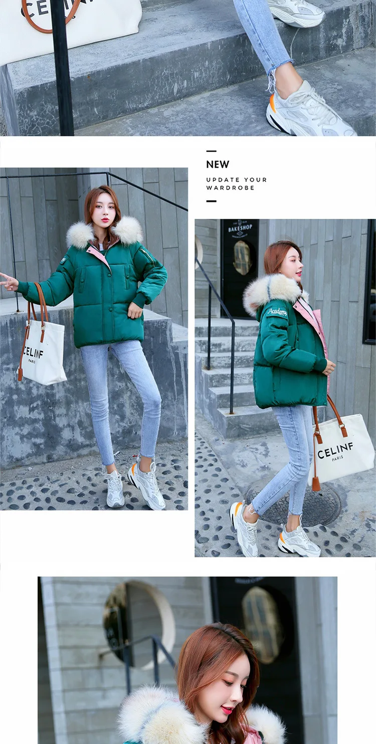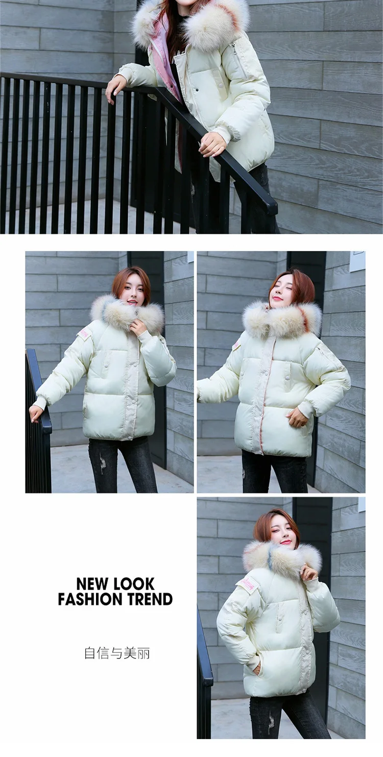 Шикарное короткое меховое пальто с капюшоном, зимнее пуховое пальто, женская куртка оверсайз с хлопковой подкладкой, стеганые парки, ветровка с рукавами и большими карманами