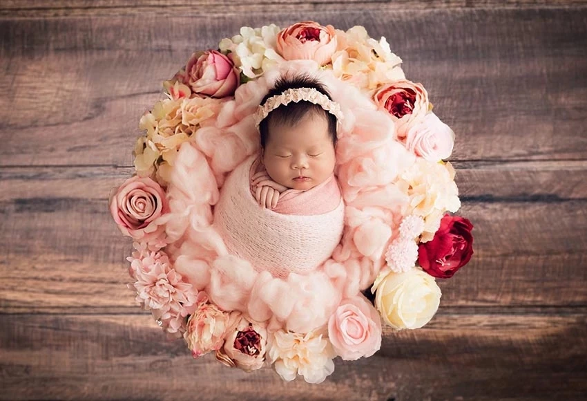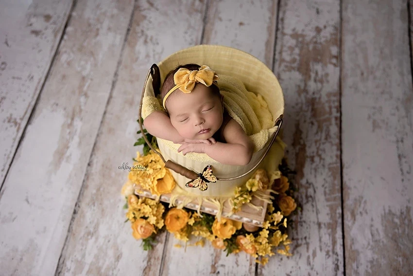 Фон для фотографирования новорожденных с изображением деревянных досок
