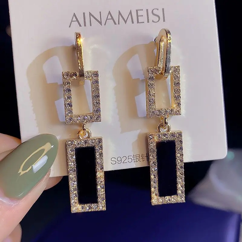Серьги, новинка, трендовые, минималистичныестразы, Длинные геометри...