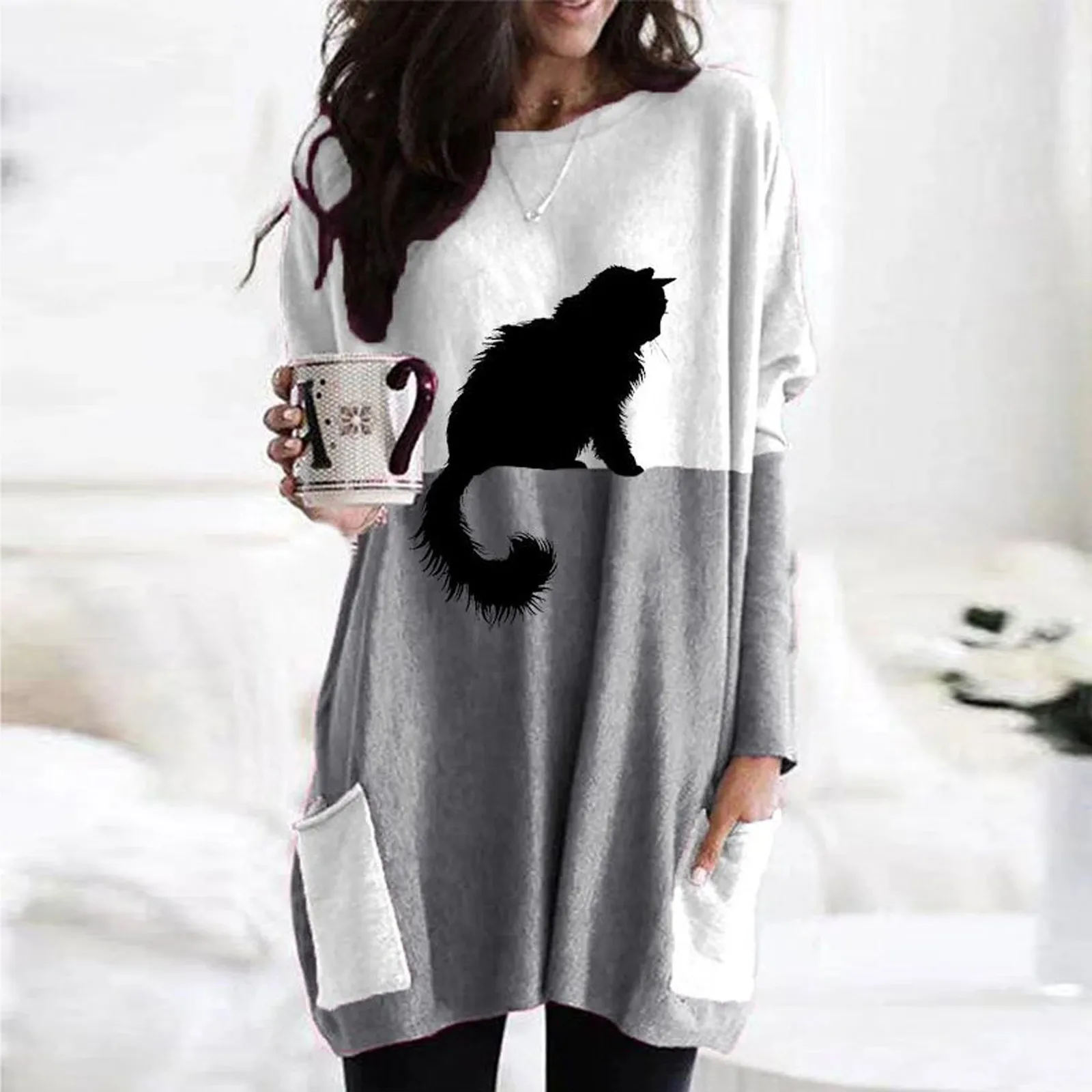 Женская мода Досуг время сплайсинга печати двойной карманы Топы Блузки