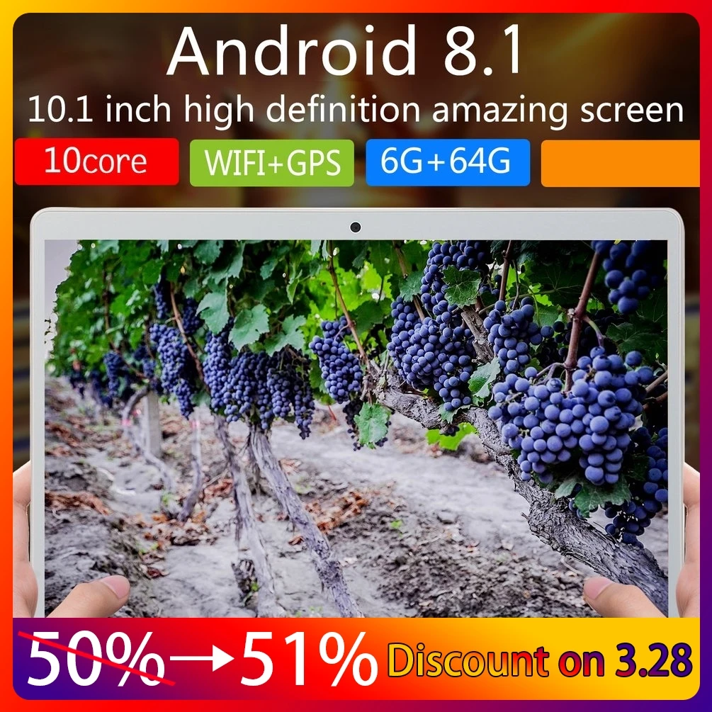Классический планшет V10, большой экран 10,1 дюйма, Android 8,10, модный портативный планшет, 6 ГБ + 64 ГБ, белый планшет, белая вилка ЕС