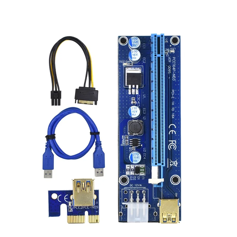 TISHRIC 10 шт. PCI PCI-E PCIE Riser 009S VER009S 6Pin to расширитель SATA Riser PCI E 16x Molex Adapter 009 Riser Card Blue