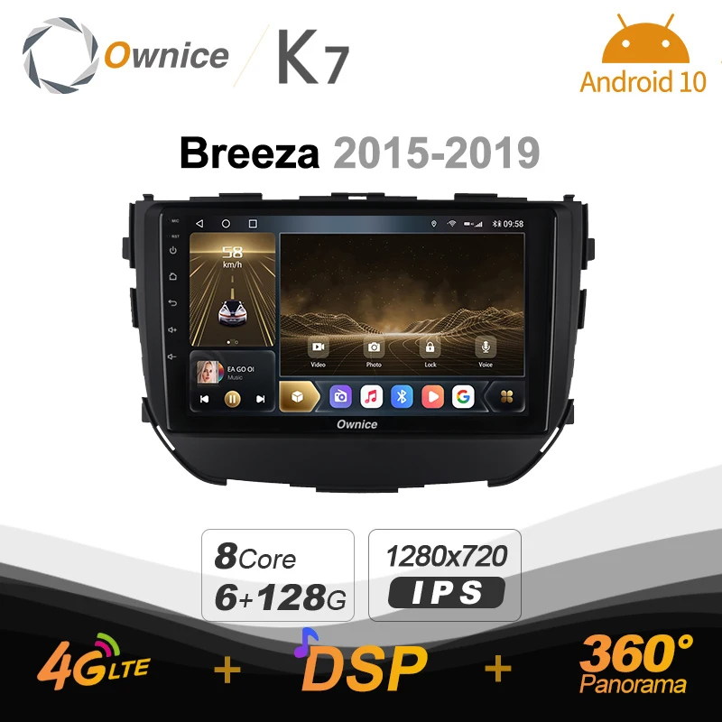 Автомагнитола Ownice K7, Мультимедиа система на Android 10,0, 6 ГБ + 128 Гб, для SUZUKI breeza 2015-2019, радио, блок 360, панорама, 4G LTE