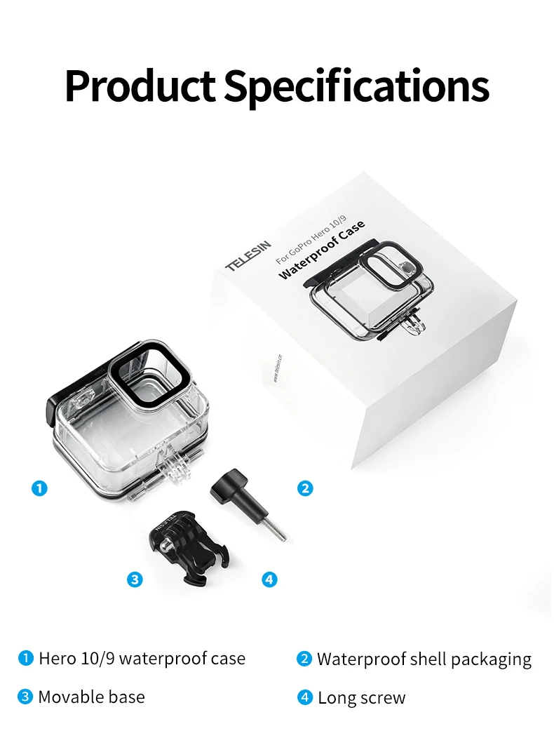 Защитный чехол TELESIN для экшн-Камеры GoPro Hero 10, 9, водонепроницаемый, 45 м