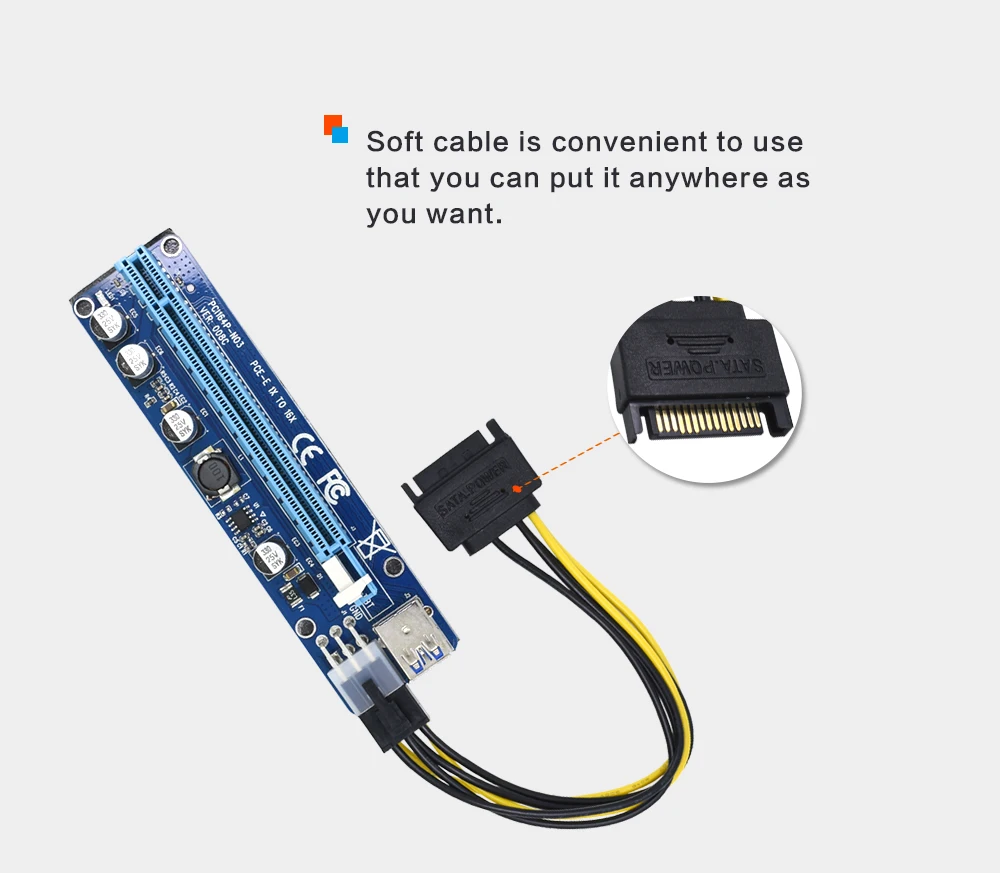 10 шт. TISHRIC VER008C PCIE Райзер-карта PCI Express Sata до 6Pin1X...