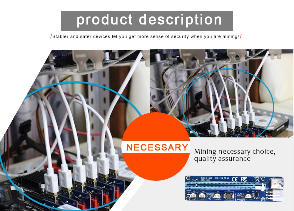 TISHRIC 10 шт. новейший PCI 008C Riser Card 60 см USB3.0 Графический удлинитель PCIE PCI-E 1X до 16X удлинитель для GPU Miner Mining