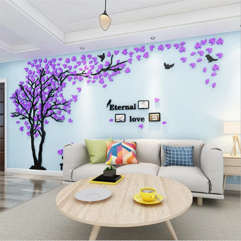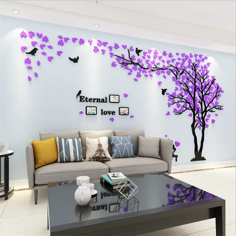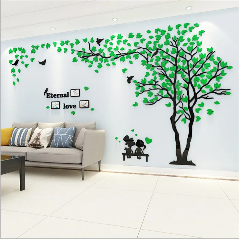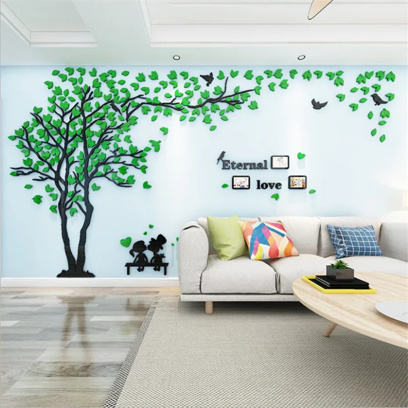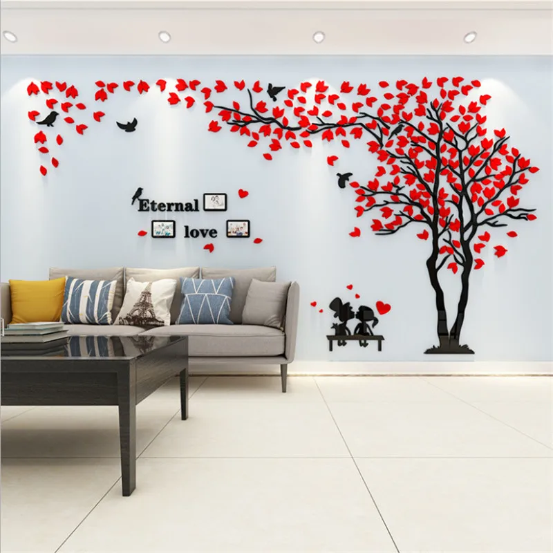 DIY большой размер милая пара фото-наклейка для стены дерево украшение художественные фоны для телевизора домашний декор наклейки для гостиной