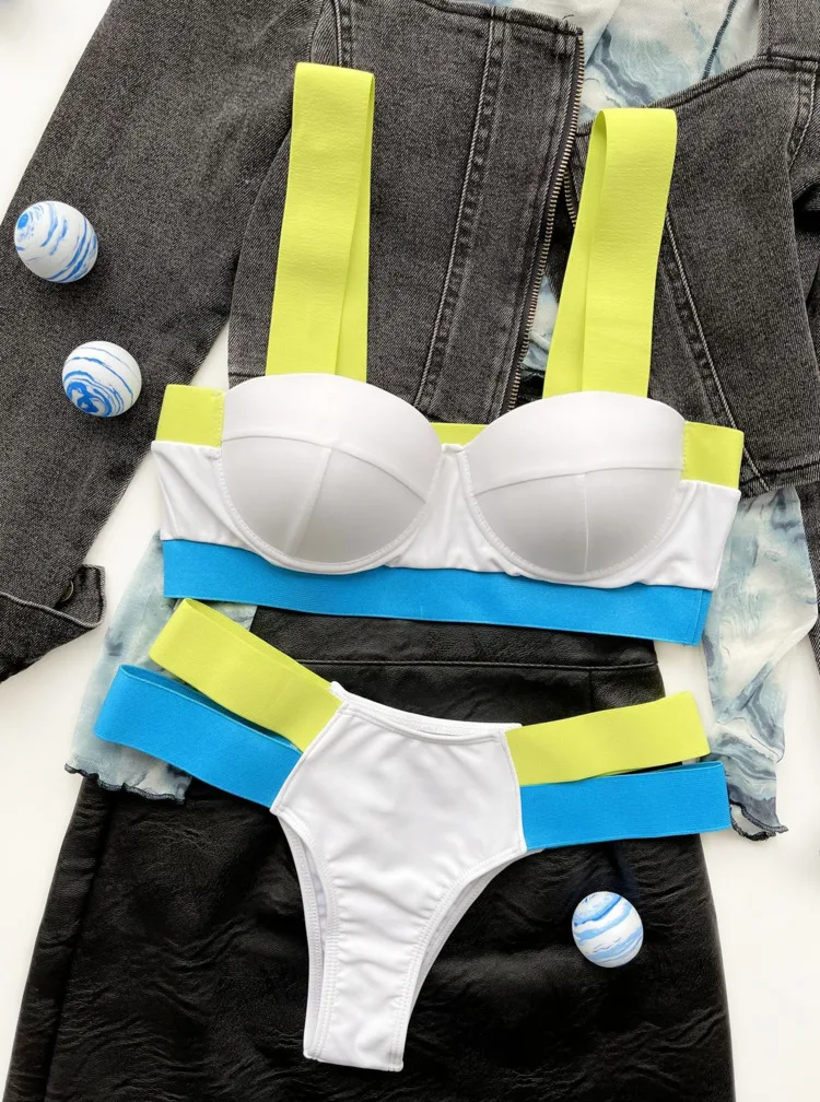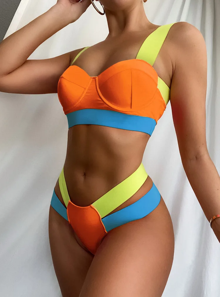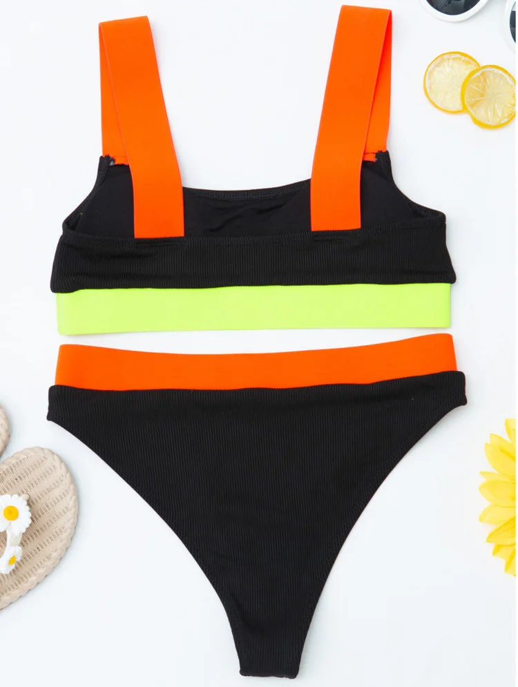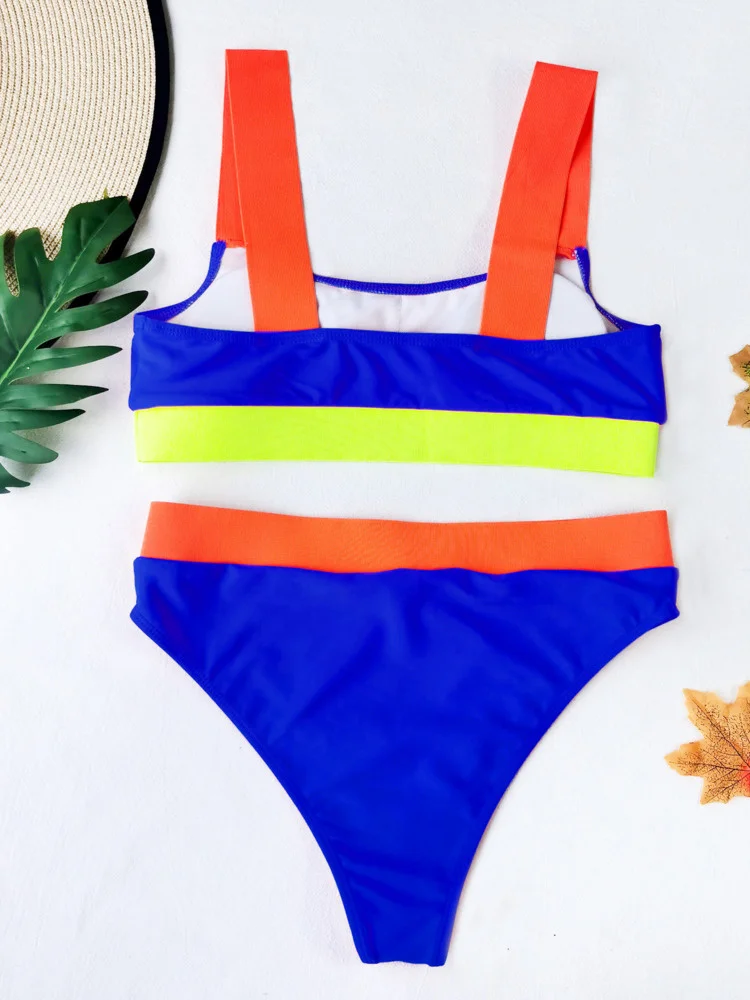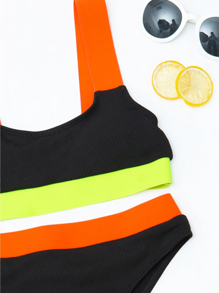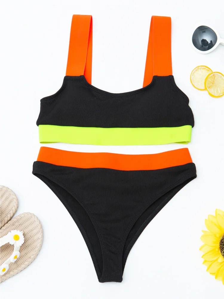Купальник-бикини женский с высокой талией, пикантный неоновый спорт...
