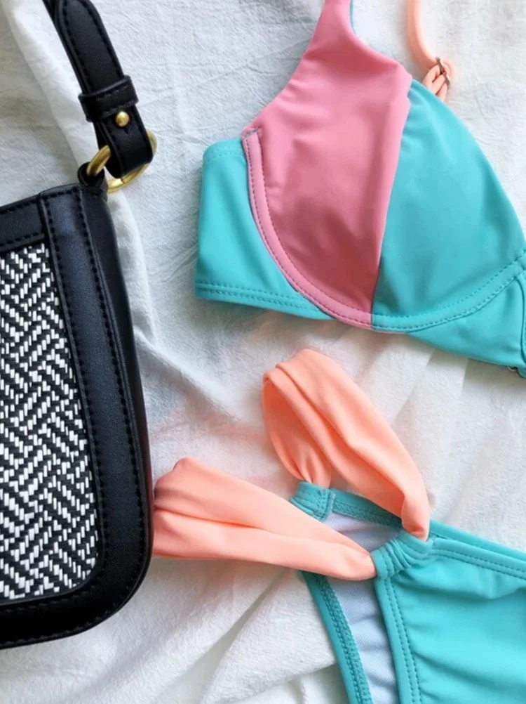 Милый лоскутный комплект из двух предметов, купальник, бикини, женс...