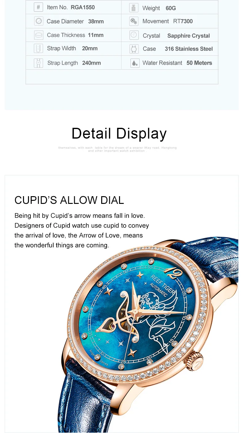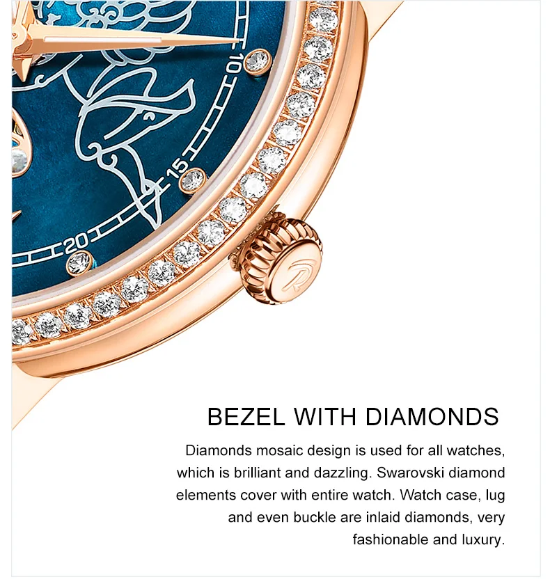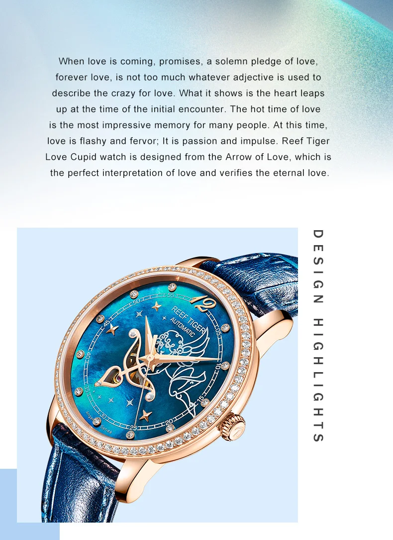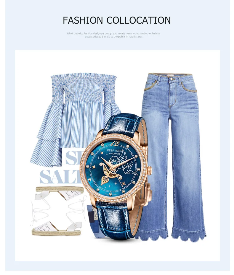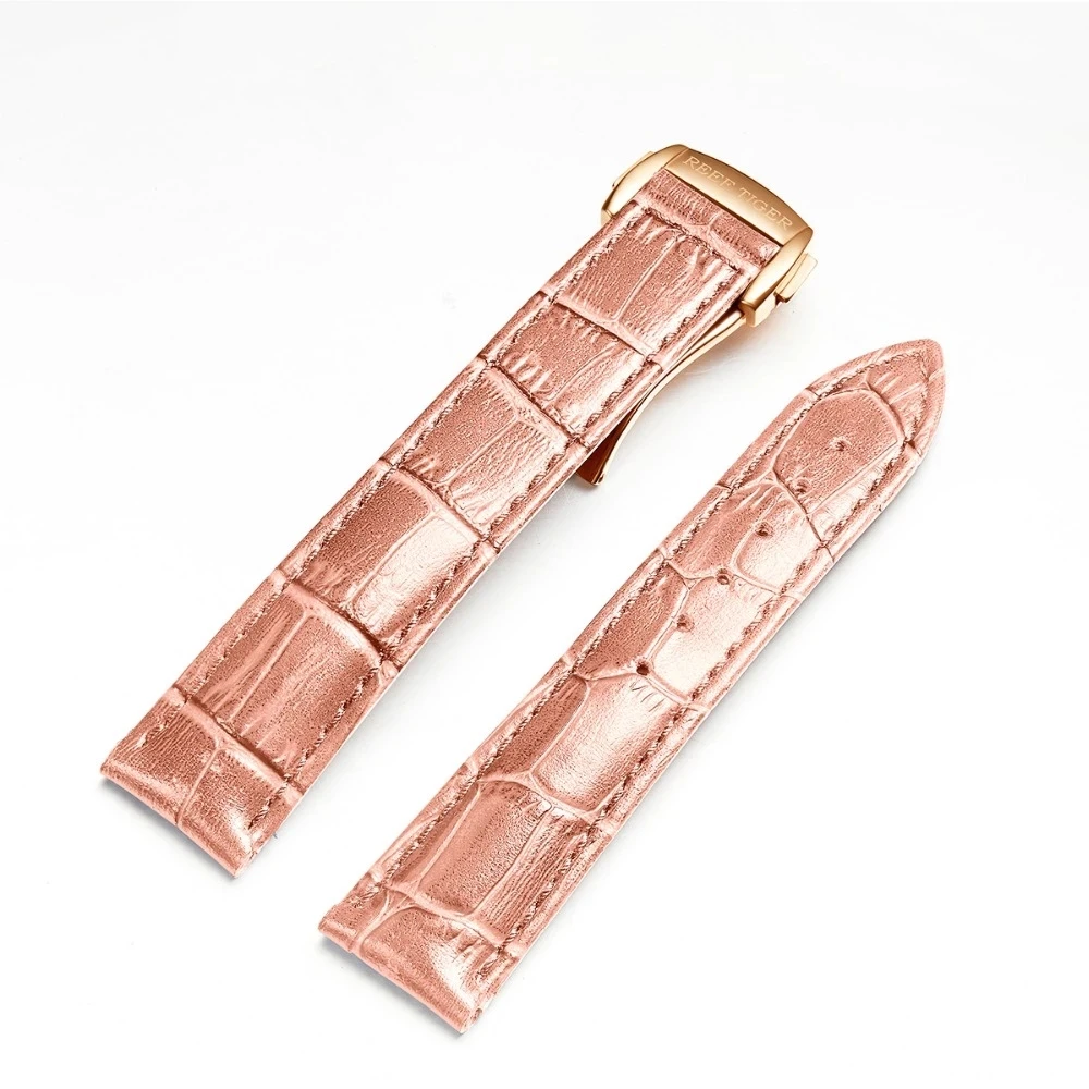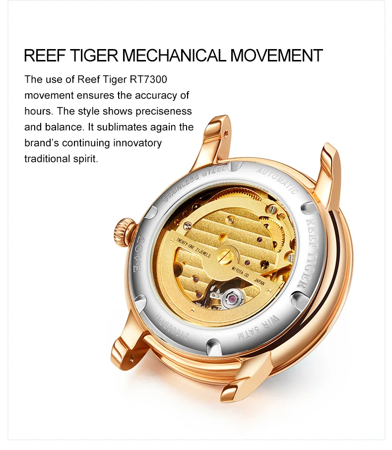Дизайнерские модные женские часы Reef TigerRT, автоматические механические часы из телячьей кожи с белым циферблатом швабры и бриллиантами