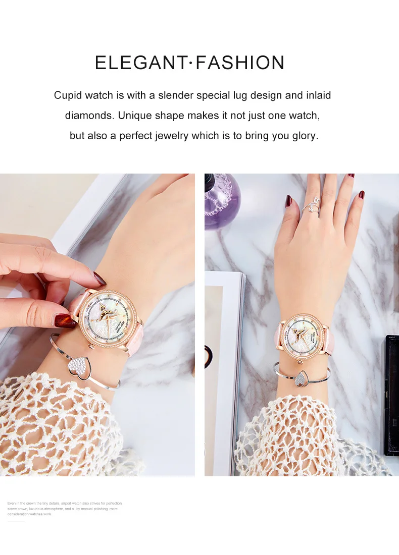 Часы женские Автоматические с Циферблатом из телячьей кожи, с белым...