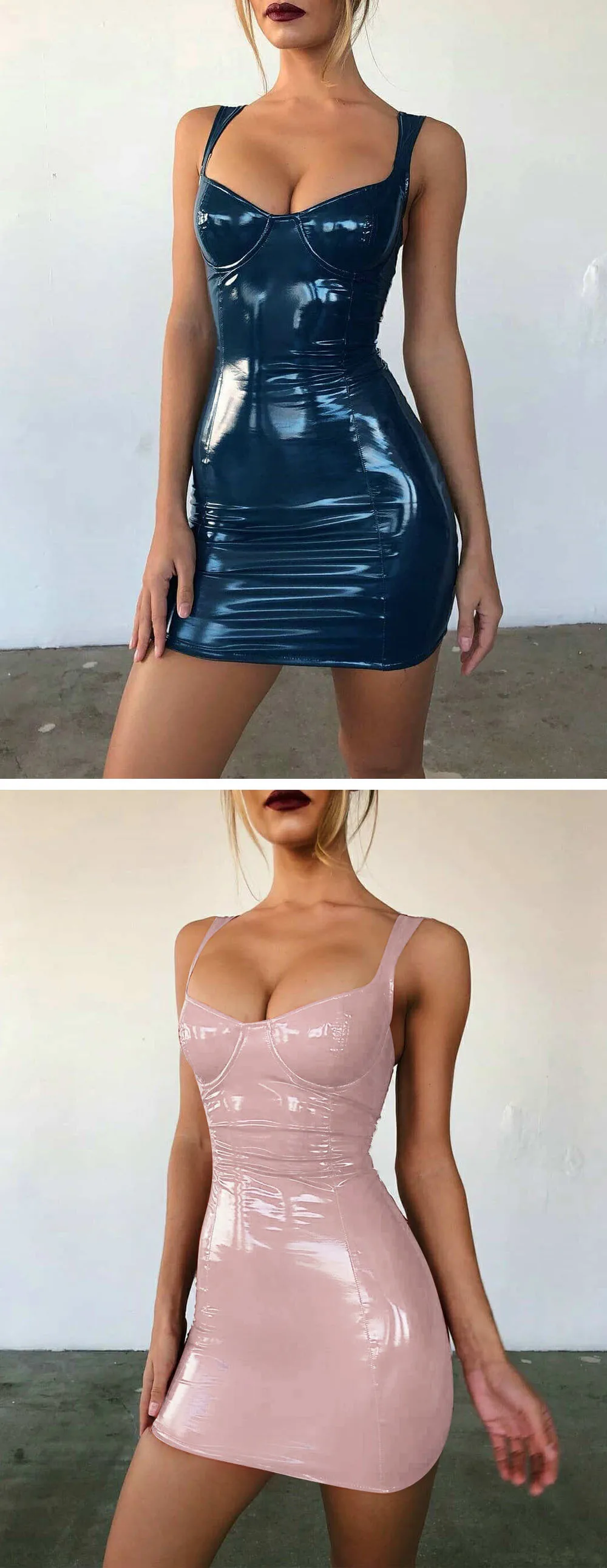 Новое клувечерние вечернее яркое кожаное сексуальное короткое плать...